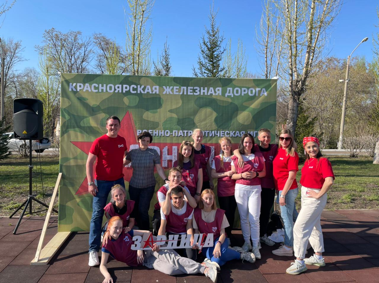 В мае 2022 года студенты-волонтеры КрИЖТ совместно с Молодежным советом на КрасЖД приняли активное участие в организации военно-спортивной игры "Зарница" для работников разных сфер КрасЖД.