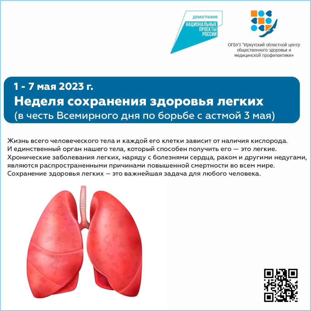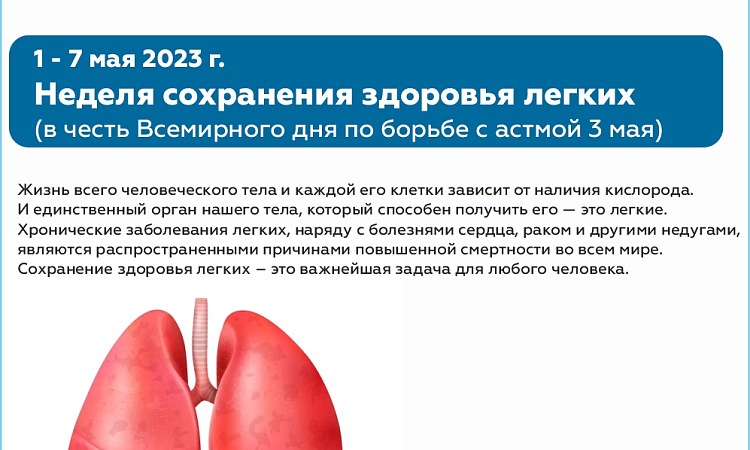 1-7 мая. Неделя сохранения здоровья легких (в честь Всемирного дня по борьбе с астмой 3 мая)