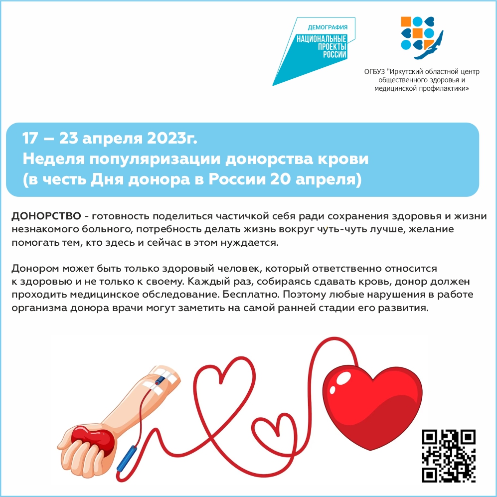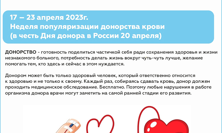 17-23 апреля "Недели популяризации,донорства крови (в честь Дня донора в России 20 апреля)