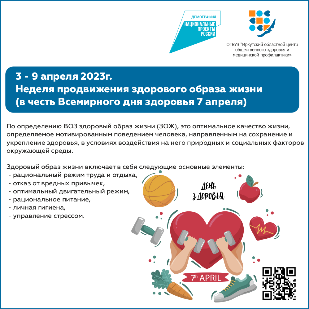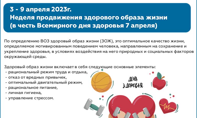 3 - 9 апреля "Неделя продвижения здорового образа жизни" в честь, Всемирного дня здоровья 7 апреля