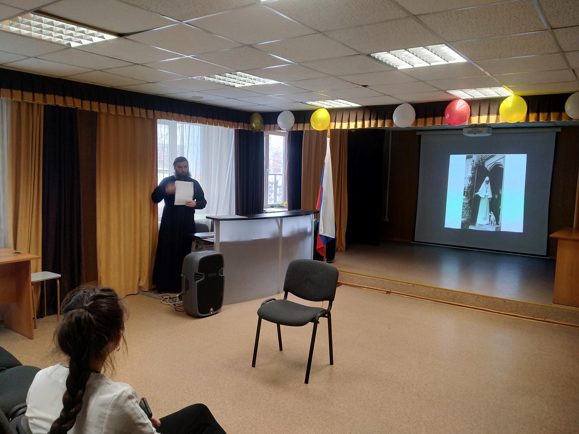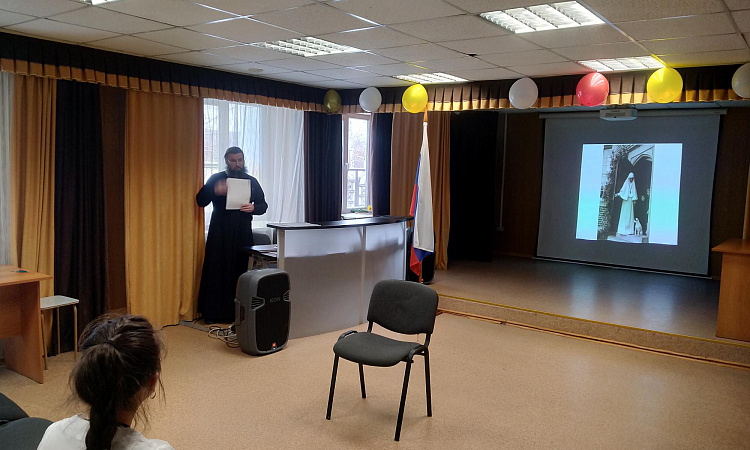 10 ноября в медицинском колледже прошла беседа первокурсников с батюшкой. Темой беседы стала: "Елизавета Федоровна, основательница сестричества в России". Студенты узнали много интересного из жизни Елизаветы Федоровны, вдохновились ее примером самоотверженности, преданности своему делу. Студентам было особенно интересно окунуться в беседу, поскольку сами учатся на отделении Сестринского дела и эта тема им очень близка.