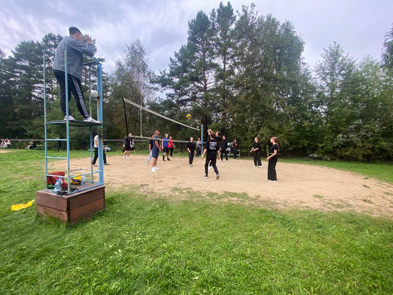 Команда девушек (СД 9-24-1, СД 9-23-1) по волейболу достойно играла с мужской командой другого факультета.