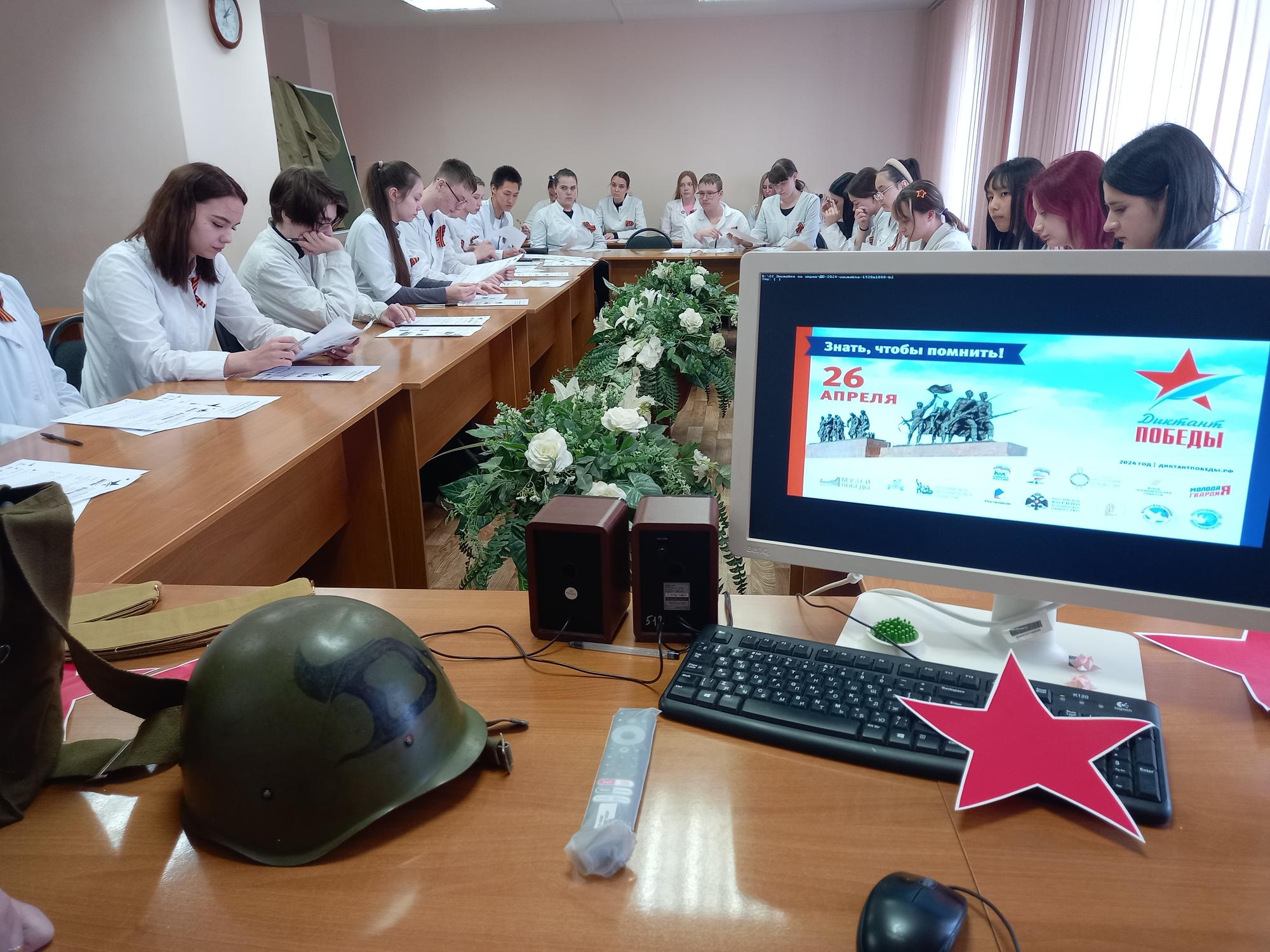26 апреля 2024 года на площадке нашего колледжа прошла ежегодная Международная просветительско-патриотическая акция «Диктант Победы». Акция направлена на повышение исторической грамотности и патриотическое воспитание молодежи, а также на формирование нравственных ценностей у подрастающего поколения, основанных на исторической правде о событиях Великой Отечественной войны и Второй мировой войны. "Диктант Победы" писали студенты и преподаватели медицинского колледжа ЖТ.