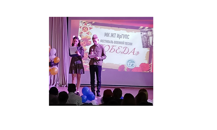3 мая студенты медицинского колледжа :ЖТ ИрГУПС участвовали в фестивале Военной песни. Группы выступали с песнями военных лет, также инсценировали фрагменты из кинофильмов.