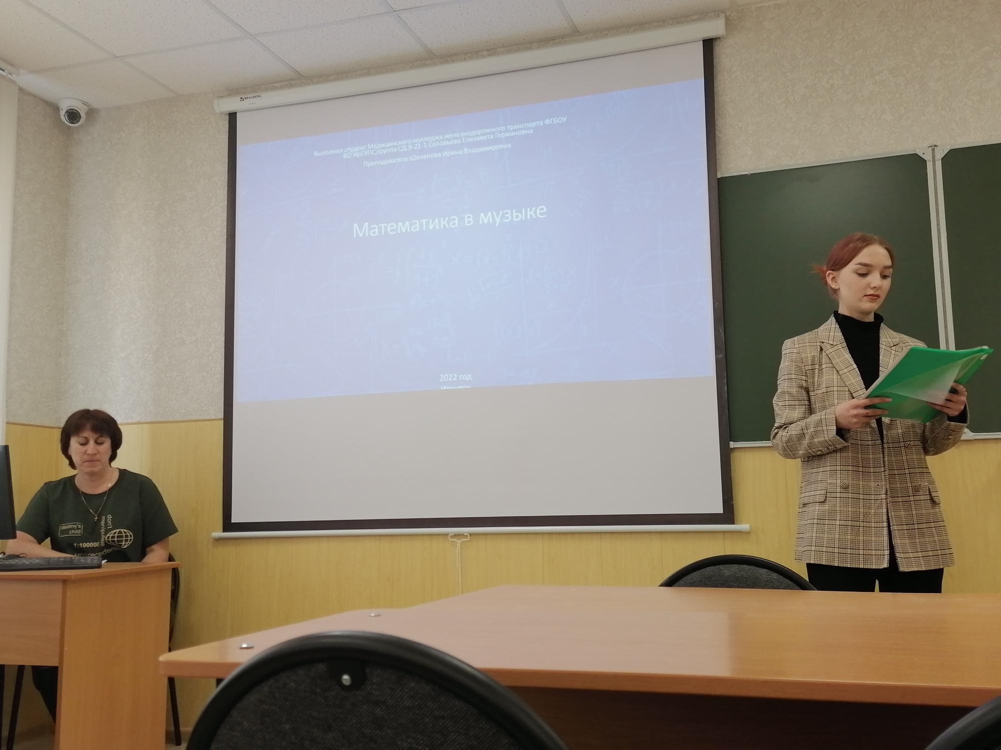 Шулунова Полина (руководитель Демидова Л.В.) представила доклад на тему «Симметрия в орнаментах бурятских костюмов», а Соловьева Елизавета (руководитель Шелепова И.В.) выступила с докладом на тему «Математика в музыке».