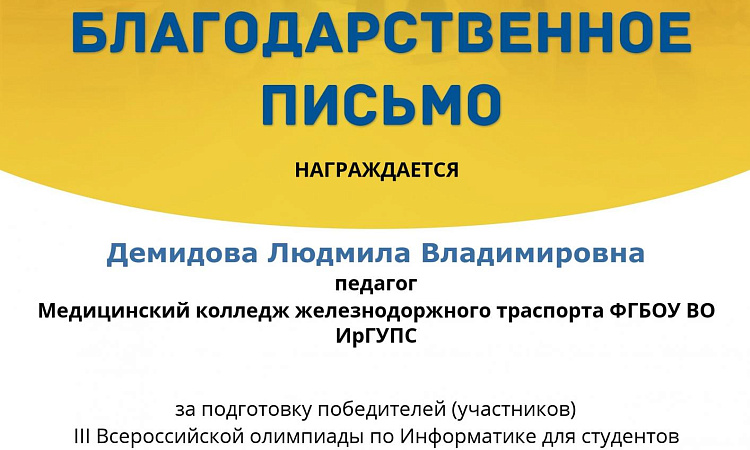 Демидова Л.В., преподаватель МК ЖТ ИрГУПС