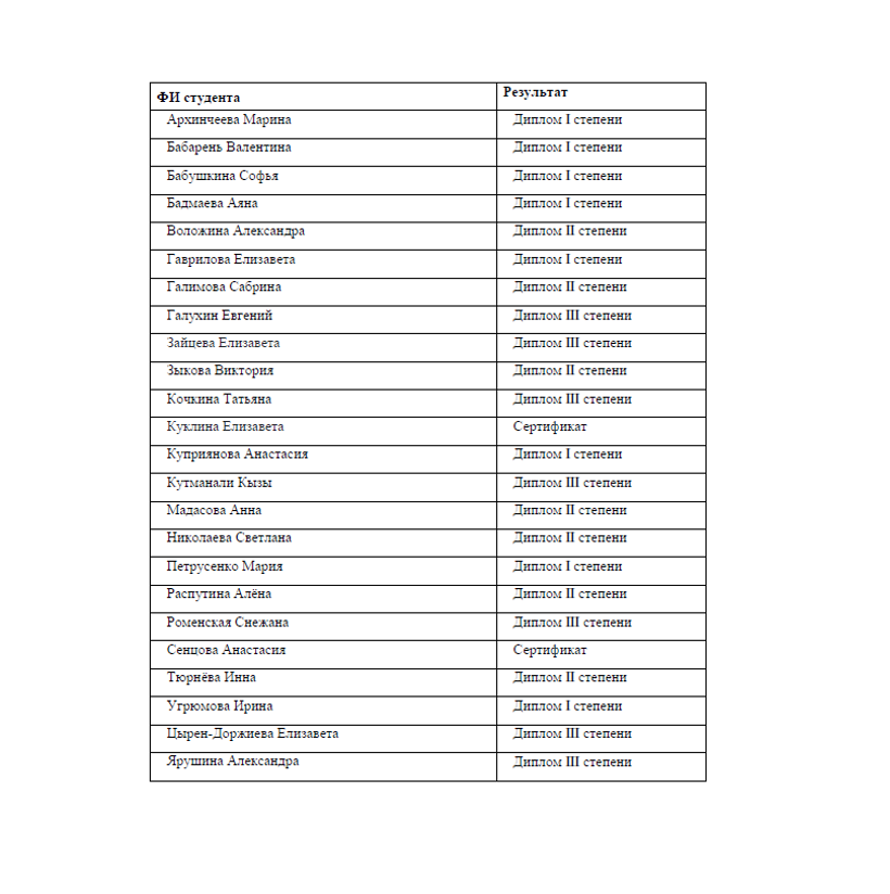 Под руководством преподавателя колледжа Натальи Зверевой студенты 2 курса групп ЛД.11-21-1(И,О) и ЛД.11-21-2(И,О) приняли участие в Межрегиональной Интернет-олимпиаде «Текстовый процессор Microsoft Word» среди обучающихся медицинских образовательных учреждений, организованной ФГБОУ ВО «Хакасский государственный университет им. Н.Ф. Катанова» (г. Абакан), которая проводилась с 05 по 10 декабря 2022 г.