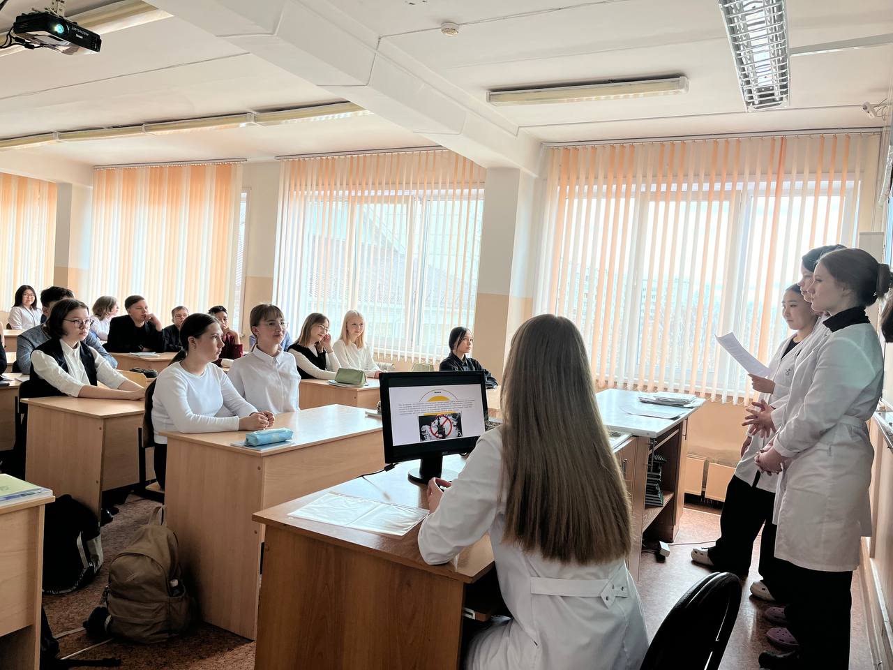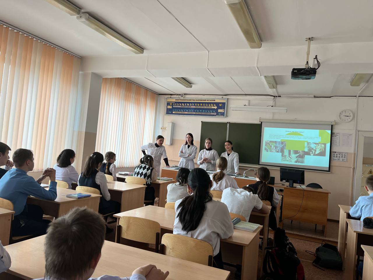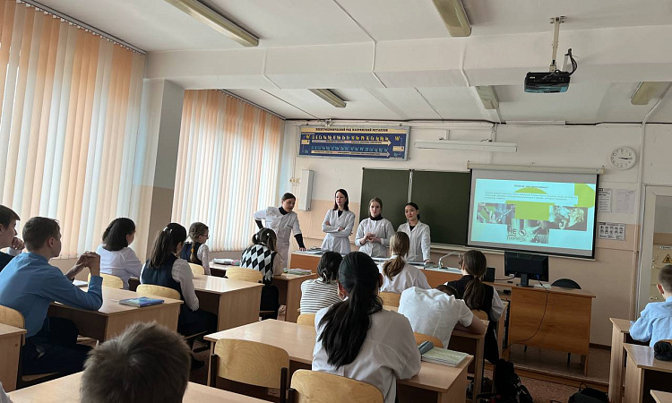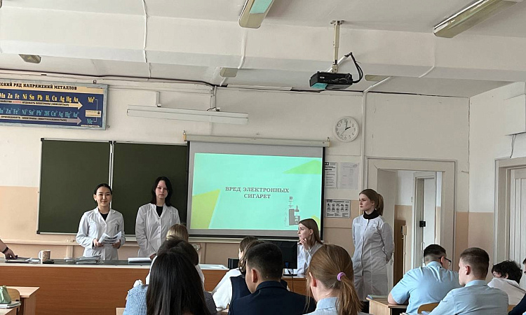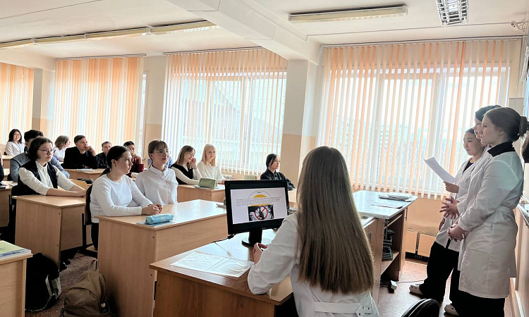 23 апреля студенты группы СД. 9-23-3: Королева Мария, Калинникова Маргарита, Таряшинова Дарья, Эсанова Диана, Рудых Снежана, Курчатова София провели 5 уроков о здоровье для учеников СОШ № 30.