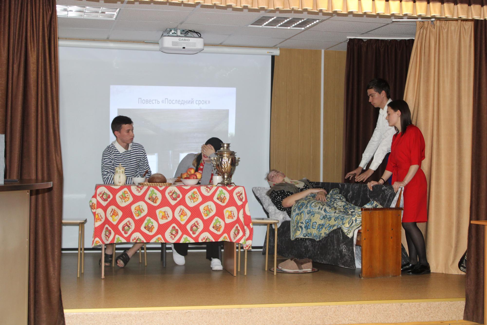 Композиция представляла собой не только «экскурсию» с театрализованными постановками по произведениям В.Г. Распутина, но также звучали душевные песни и стихотворения о маме.