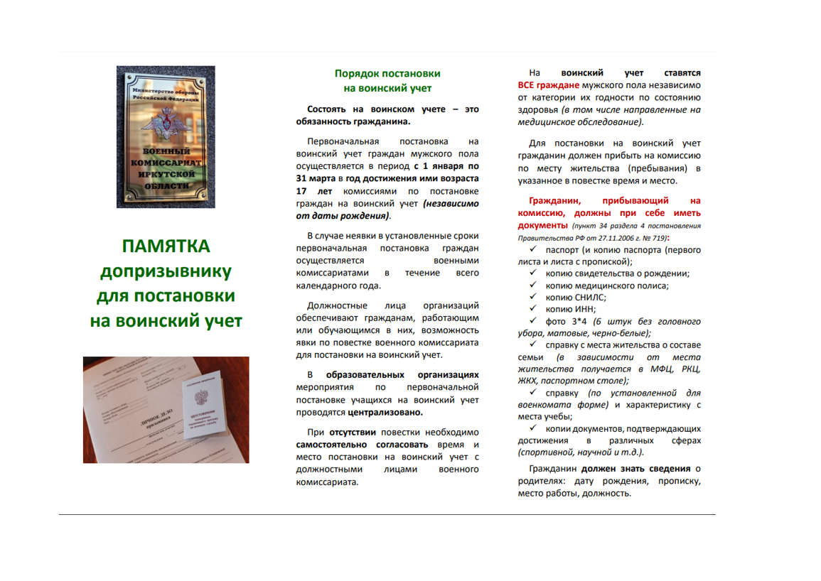 Первоначальная постановка на воинский учет граждан мужского пола осуществляется в период с 1 января по 31 марта в год достижения ими возраста