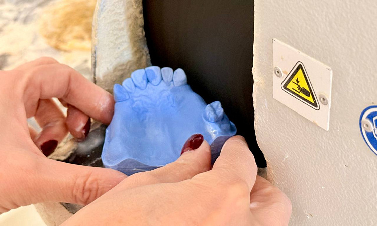 · Основа мастерства — точная модель. Главный эксперт компетенции занимается ключевой задачей: тщательным подбором и изготовлением гипсовых моделей челюстей для конкурсного задания.