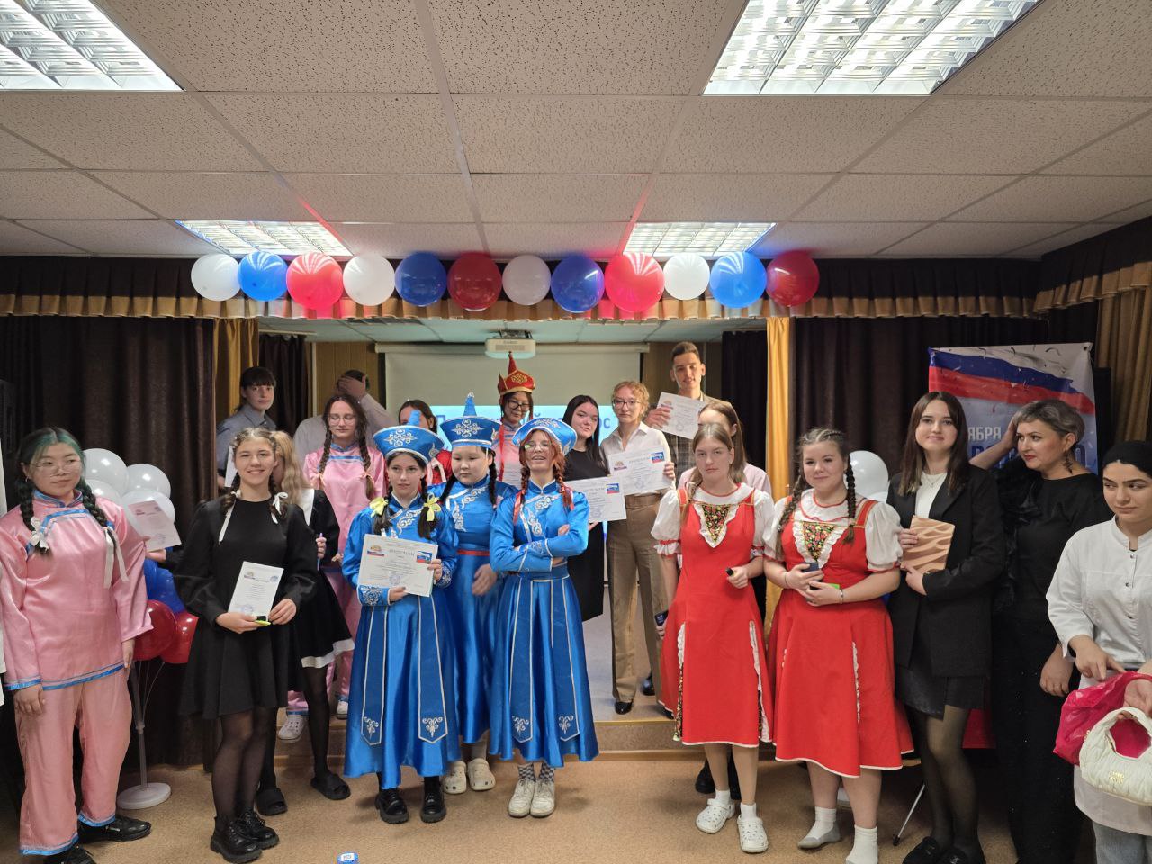 Студенты группы СД. 11-24-1 и СД.9-24-2 подготовили русские и бурятские национальные танцы в ярких костюмах, которые излучали красоту и гармонию! В завершении прозвучала песня "Родина" в трогательном исполнении Чибисовой Виктории.