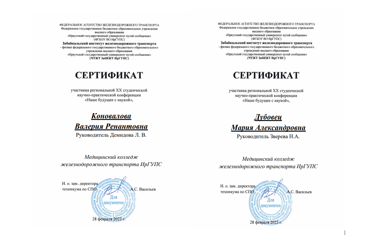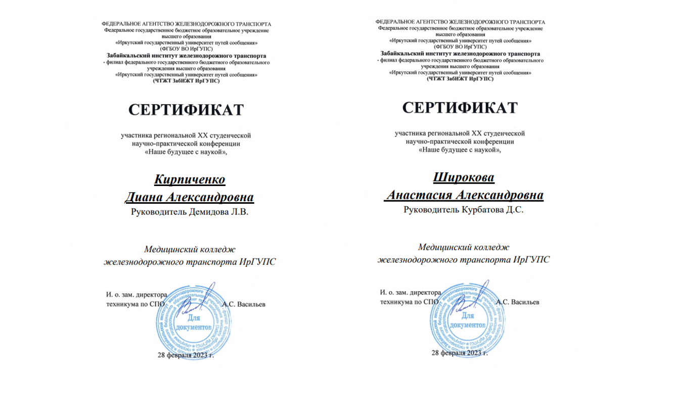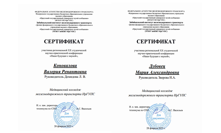 В феврале студенты медицинского колледжа ЖТ ИрГУПС участвовали в региональной XX студенческой научно-практической конференции «Наше будущее с наукой».