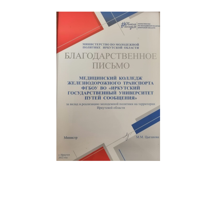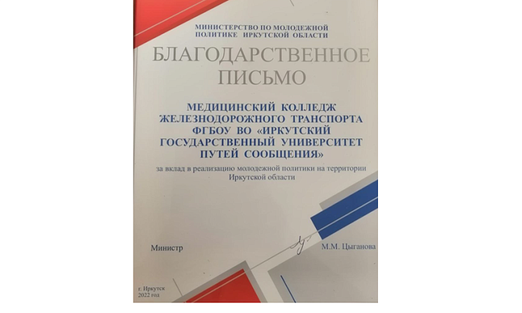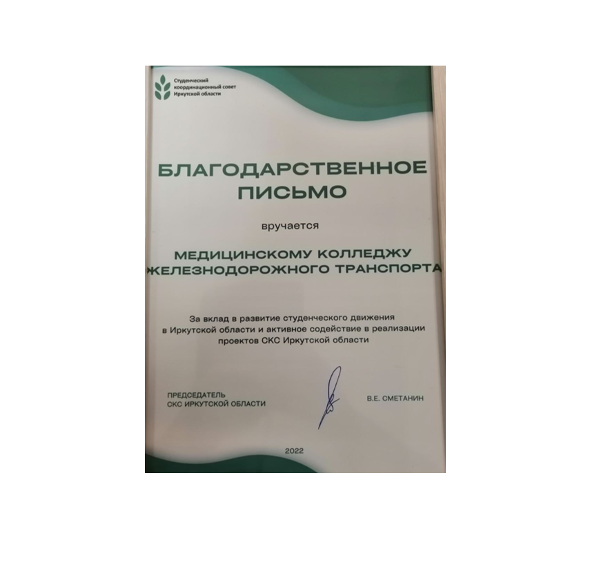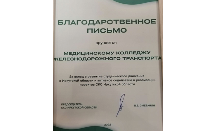 По итогам участия в мероприятиях «Молодежный карьерный форум», экологическая неделя, «Парад студенчества», «Кросс наций», волонтерская деятельность и др., медицинскому колледжу вручили благодарственные письма: