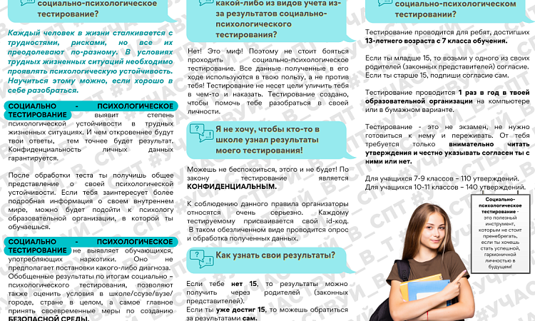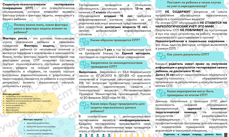Тестирование проходит в онлайн-режиме и носит конфиденциальный характер. СПТ имеет профилактическую направленность.