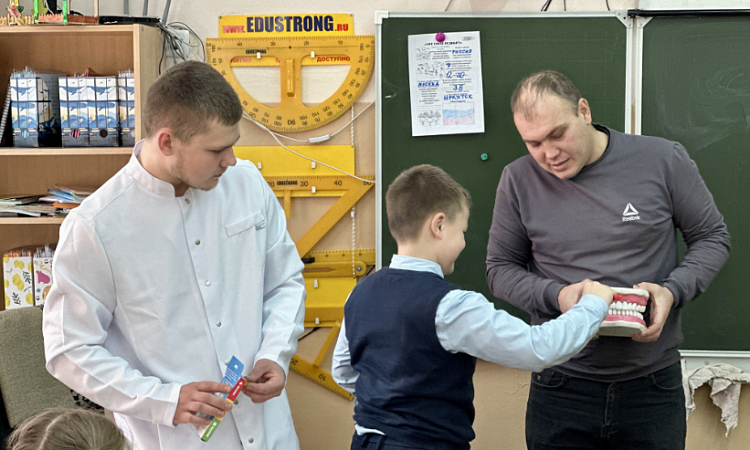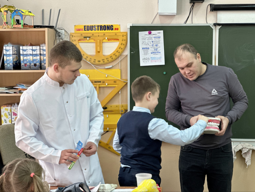 27 ноября и 1 декабря студенты МК ЖТ ИрГУПС группы СП - 11 - 22 (И,О) Кустов Виктор, Муратов Матвей, Лобанов Роман, Кашин Дмитрий, Тихонов Марк, Абу Нахлех Ильяс провели заключительные занятия из обучающего цикла о стоматологическом здоровья на тему «Правильное питание – залог здоровых зубов» в рамках грантового проекта «ЗОЖик» для учащихся 3 и 4 класса МАОУ СОШ № 63.