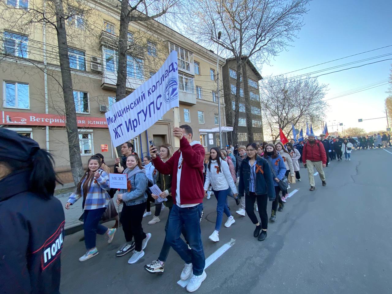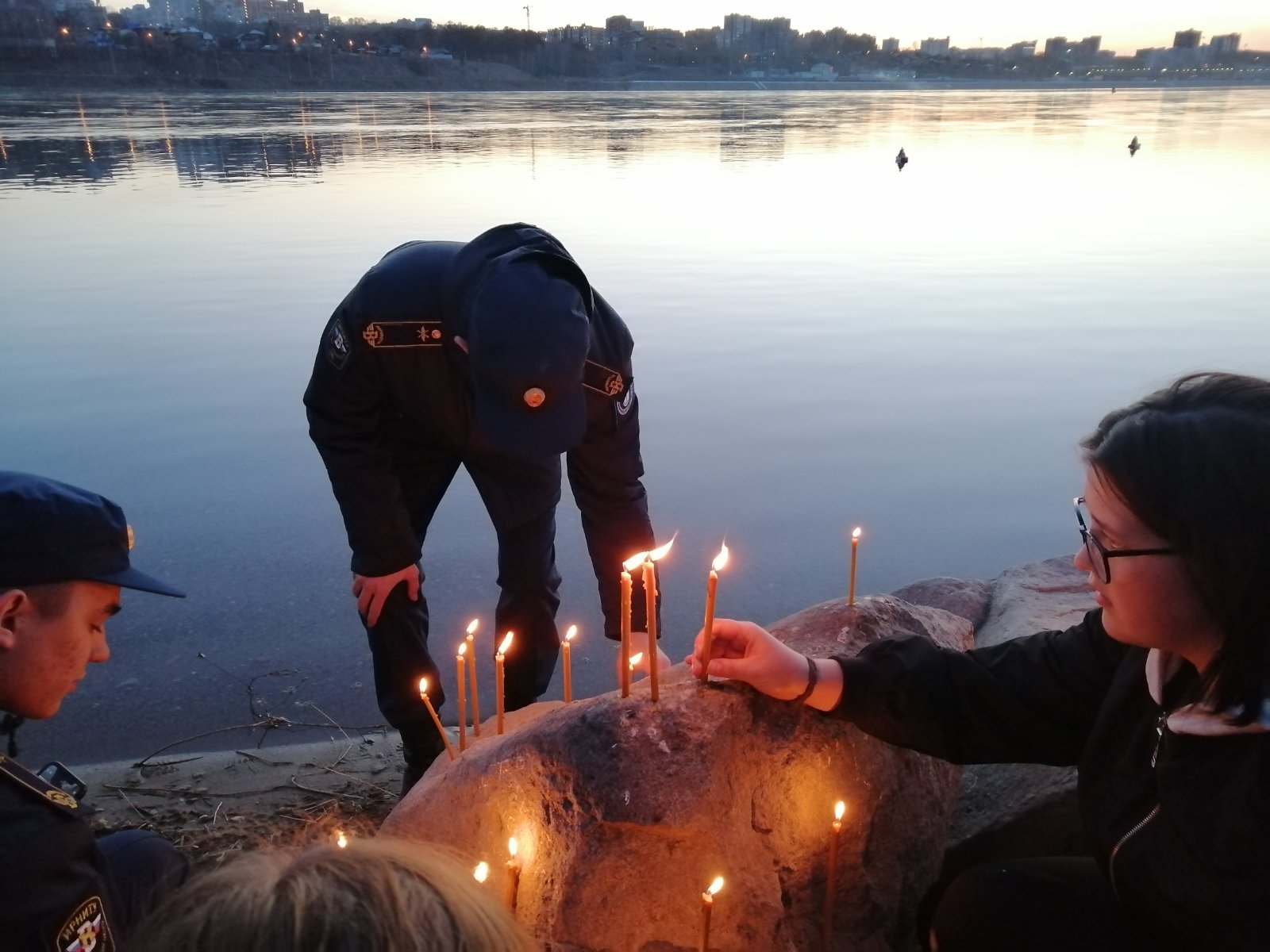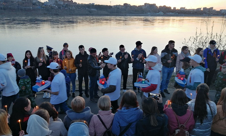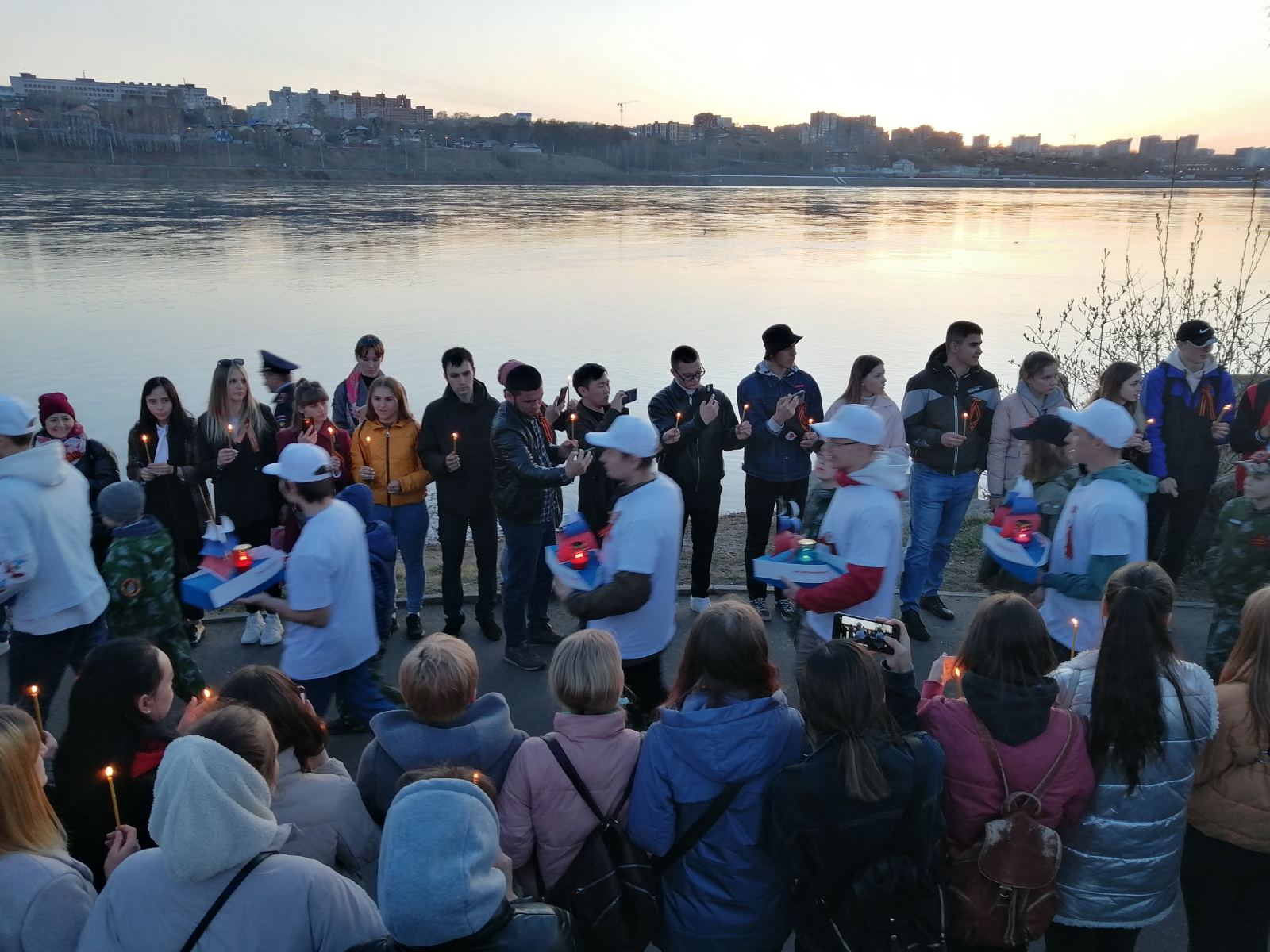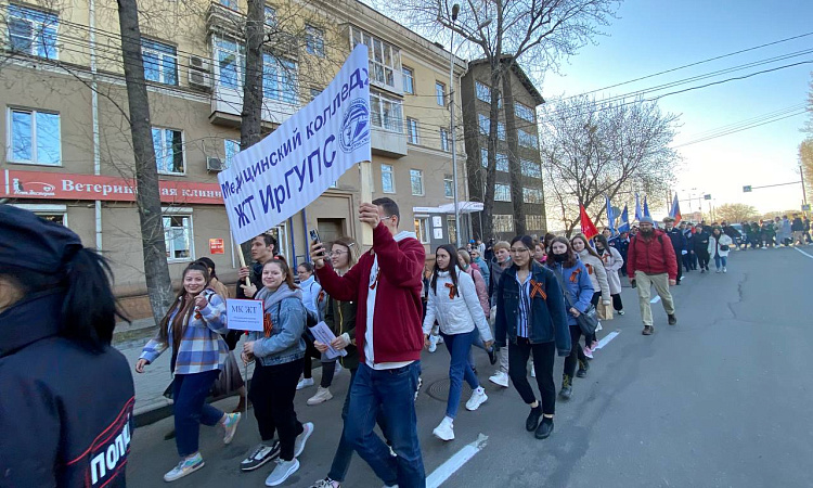 Студенты с большим энтузиазмом участвовали во всей процессии: возложение цветов к мемориалу, запуск воздушных шаров, торжественное шествие по городу с военными песнями и запуск корабликов по Ангаре в честь героев войны. По окончании официальной части, студенты установили горящие свечи на валунах в знак вечной памяти и благодарности молодого поколения.