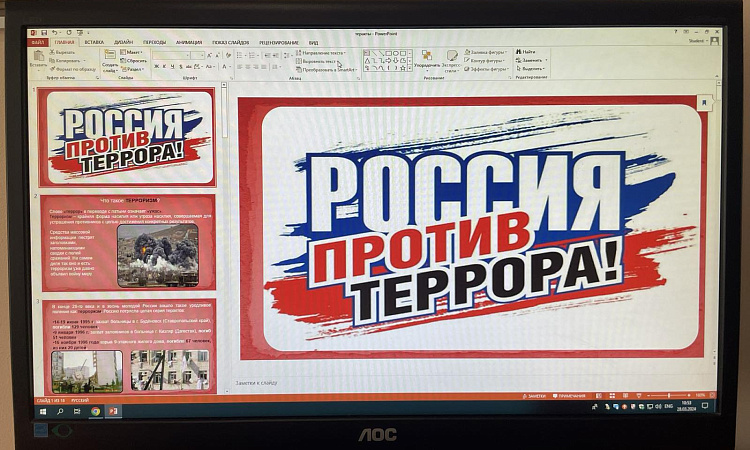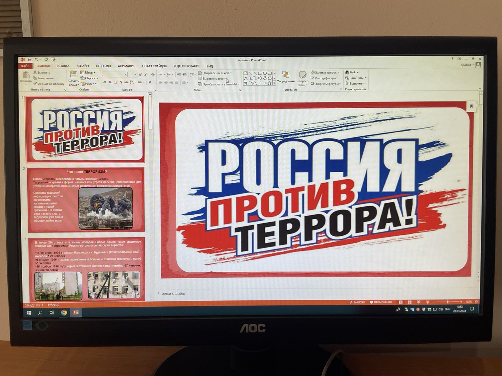 Студентам предоставлена информация о всех терактах в новейшей истории России. В ходе обсуждения акцент поставлен о недопустимости разжигания межнациональной вражды и о необходимости соблюдения мер безопасности.