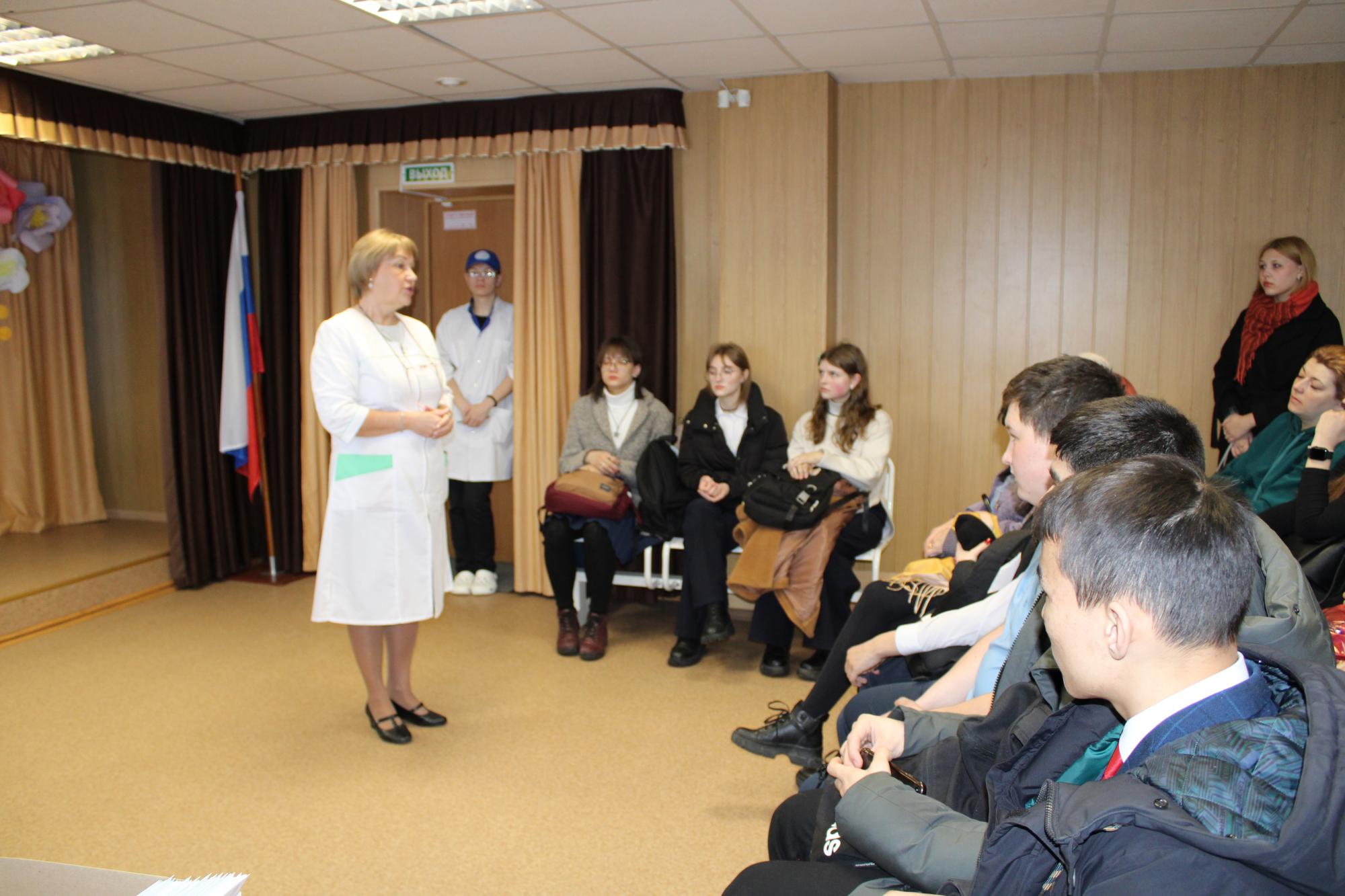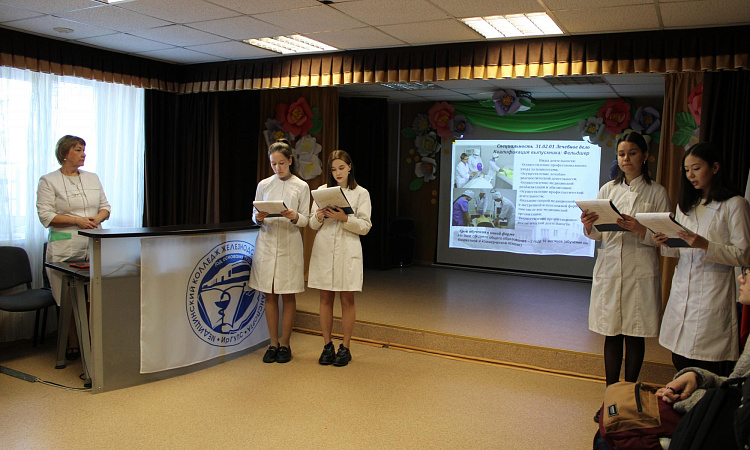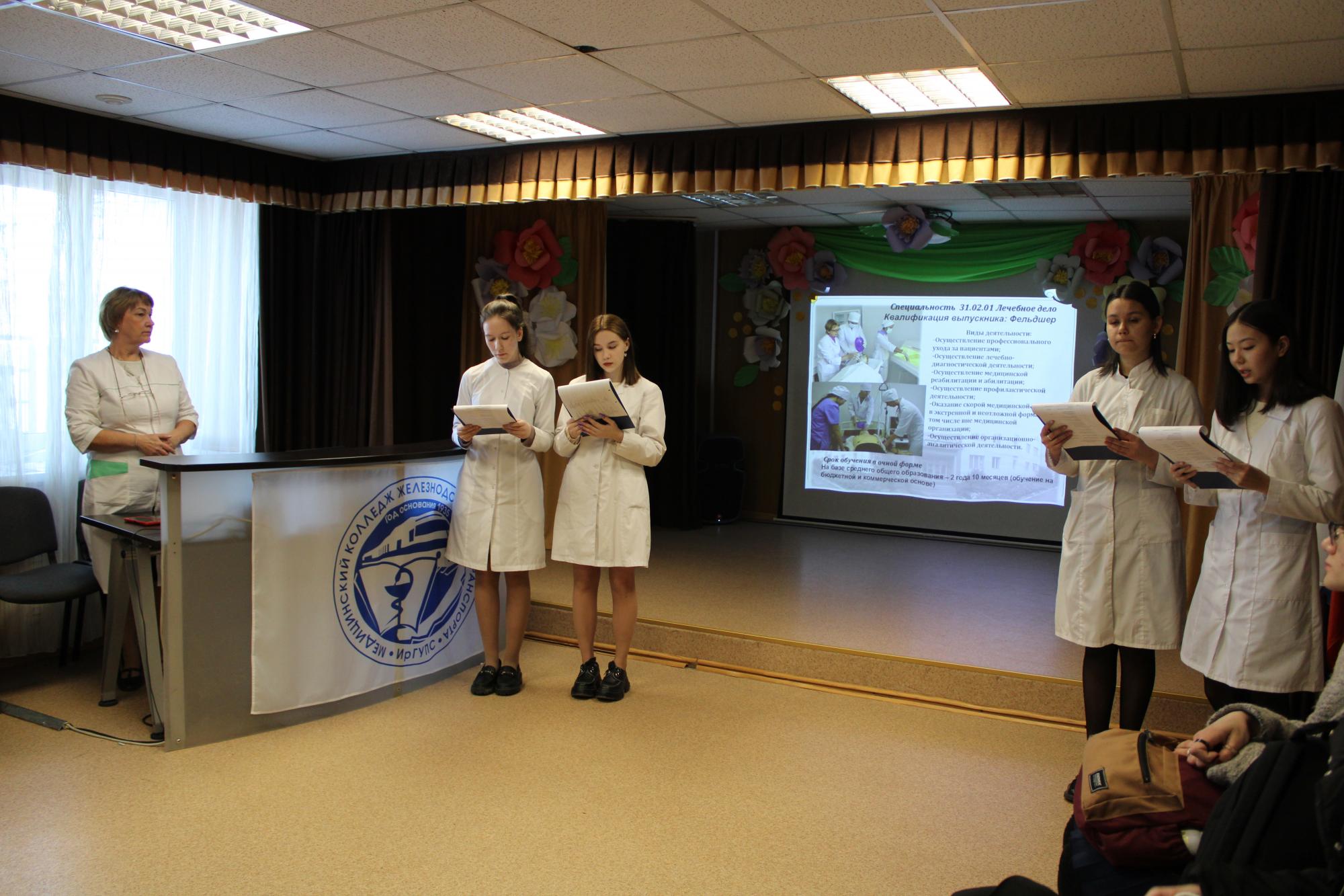 Для гостей в актовом зале был представлен видеоролик об истории колледжа, презентация об учебном процессе, базах практик, о проживании в общежитии, о досуге студентов в колледже. Студенты группы СД.9-22-3 Галина Дьякова, Анна Иващенко, Карина Галимова, Кира Улаханова, Арина Ашалгина, Мария Новоселова, Дмитрий Демидов, Дарья Фалюш, Софья Ануфриева, Анастасия Чувашова встречали, провожали, рассказывали школьникам о специальностях, проводили экскурсию по колледжу.