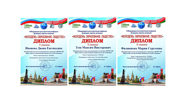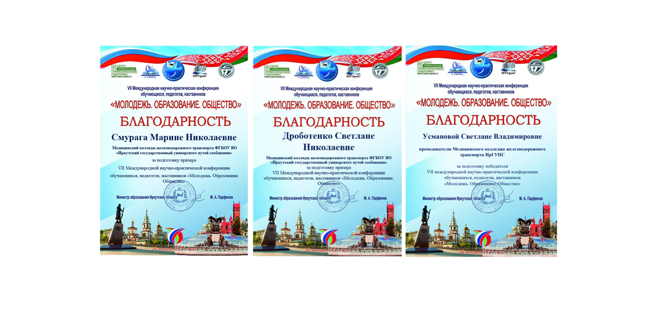 В рамках VII Международной научно-практической конференции педагогов, работодателей, обучающихся «МОЛОДЕЖЬ. ОБРАЗОВАНИЕ. ОБЩЕСТВО», в Медицинском колледже железнодорожного транспорта ИрГУПС под руководством модератора дискуссионной площадки Дроботенко Светланы Николаевны заместителя директора по ВР в очно-дистанционном формате состоялась работа дискуссионной площадки «Проблемы и перспективы развития современной медицины».
