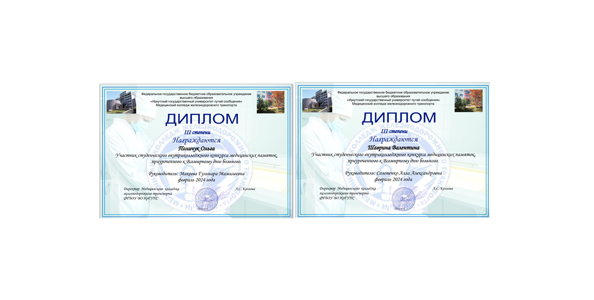 10 февраля 2024 года были подведены итоги Внутриколледжного студенческого конкурса медицинских памяток, приуроченного к Всемирному дню больного.