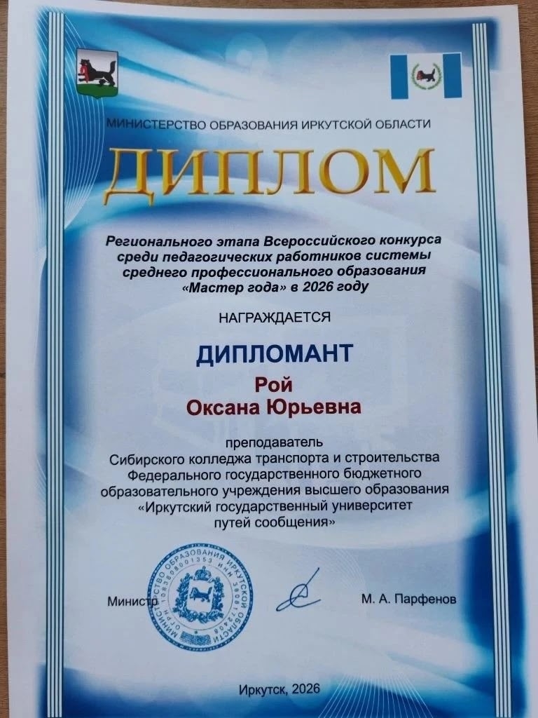 ⚡ Оксана Юрьевна Рой признана дипломантом конкурса, достойно представив свой опыт и педагогическое мастерство.