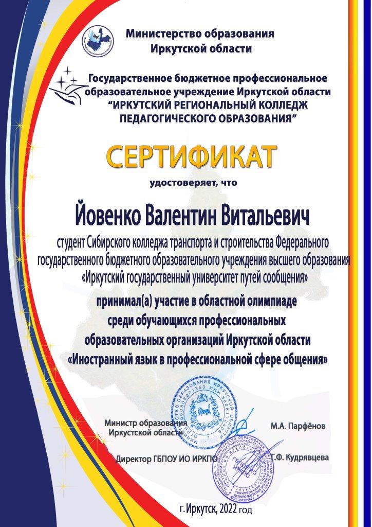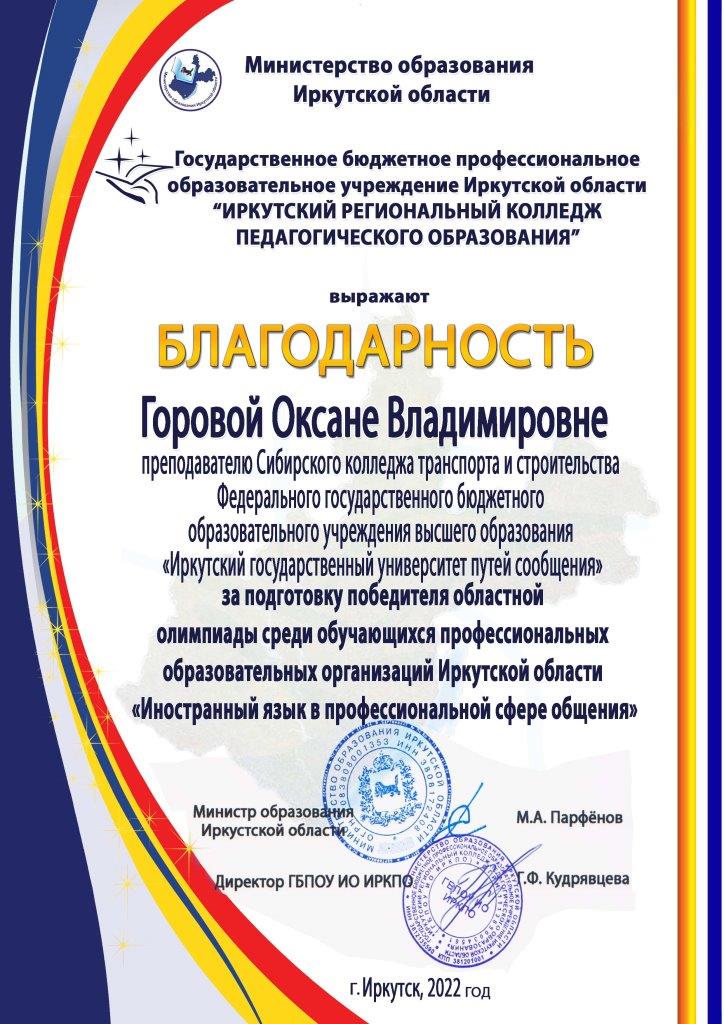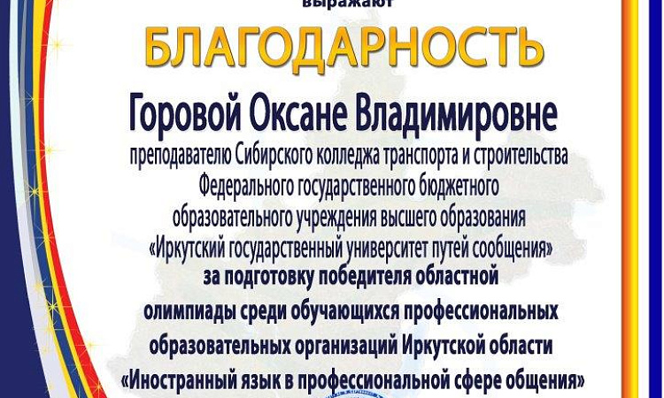 С некоторым запазданием были обнародованы итоги Областной олимпиады среди обучающихся учреждений СПО Иркутской области « Иностранный язык в профессиональной сфере общения».