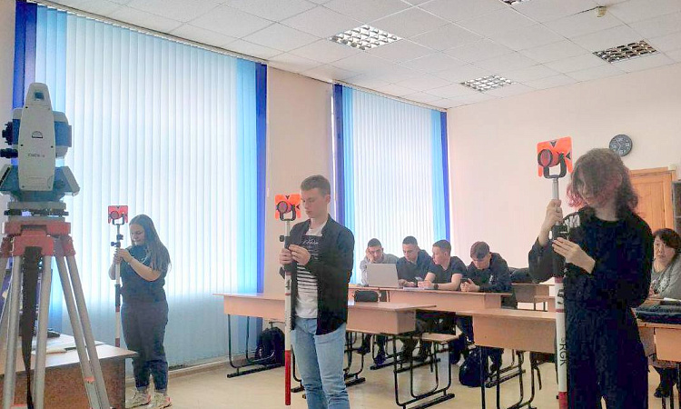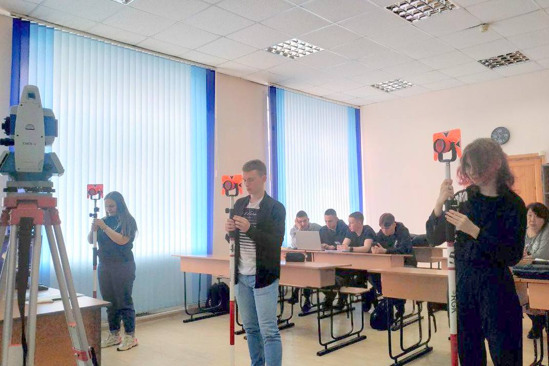 Командной работой участниками были выполнены кейсы с профессиональными заданиями с применением электронного тахеометра.