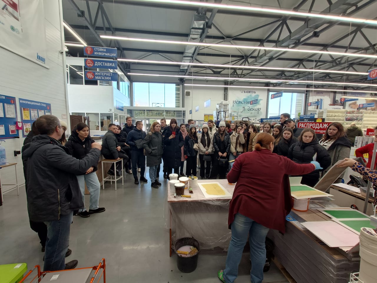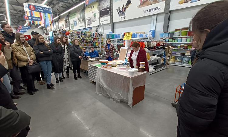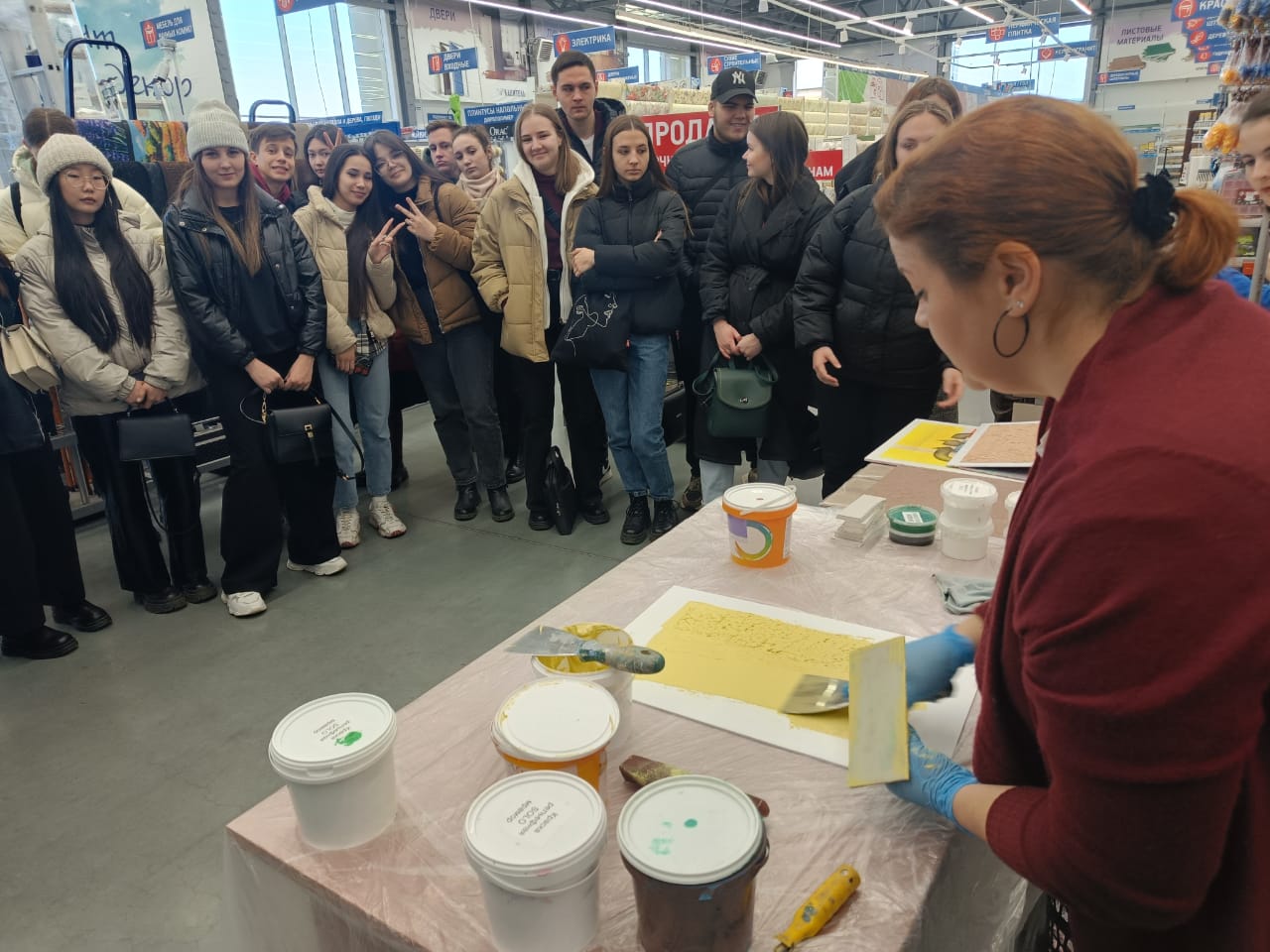 27 октября 2022 г студенты 3 курса специальности СЭЗС в составе 30 человек в сопровождении преподавателей профессиональных дисциплин, посетили мастер-класс по отделке помещений декоративными материалами на базе лакокрасочного завода Капитель. Тематика мероприятия была ориентирована на практический опыт и теоретические знания наших студентов. У многих ребят возник интерес к работе с представленными продуктами завода.