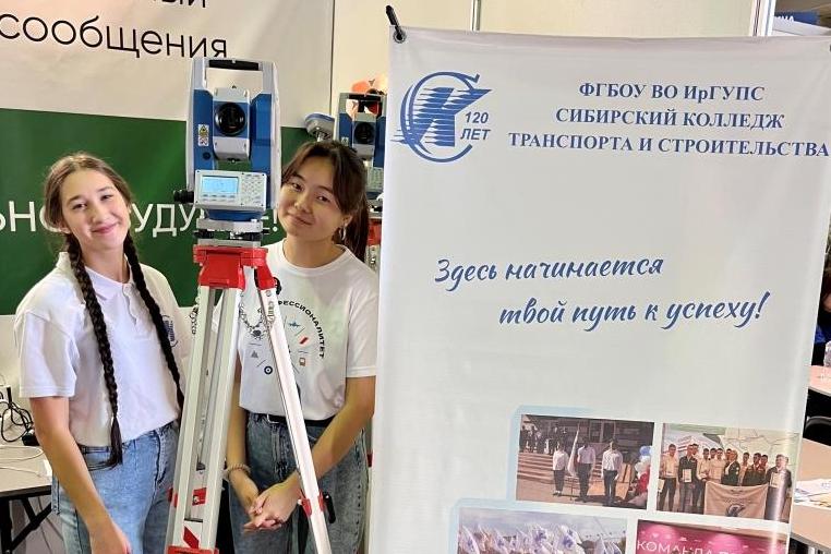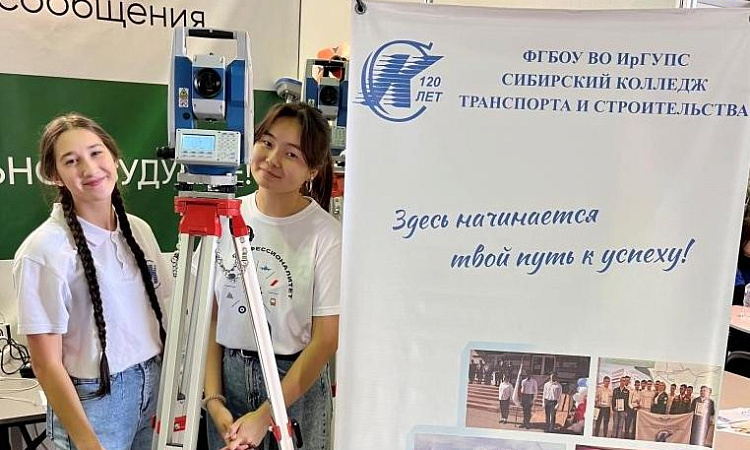 На первой площадке вместе с Иркутским государственным университетом путей сообщения были представлены специальности, по которым идёт подготовка в колледже и современное геодезическое оборудование.