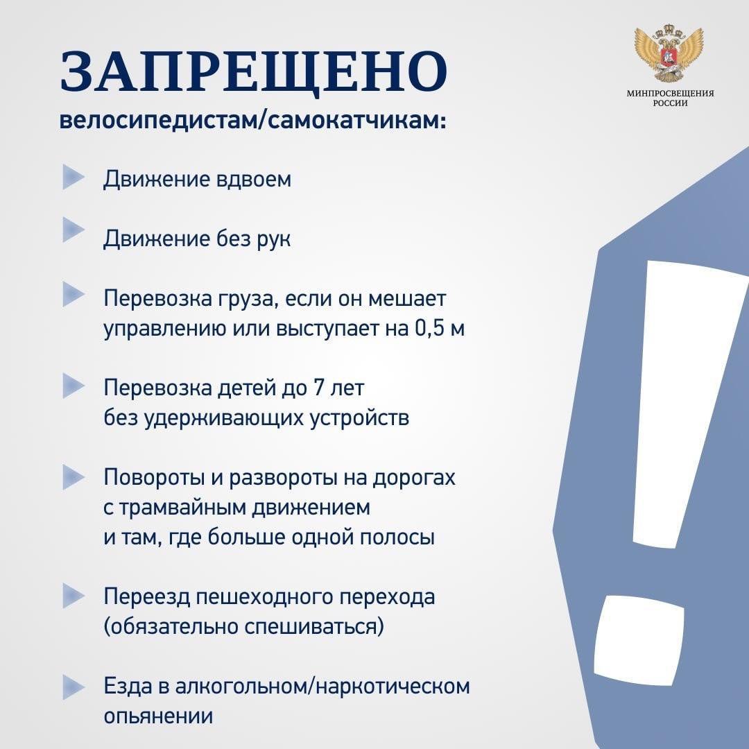 Министерство просвещения подготовило памятки о том, что должен знать каждый велосипедист и самокатчик.