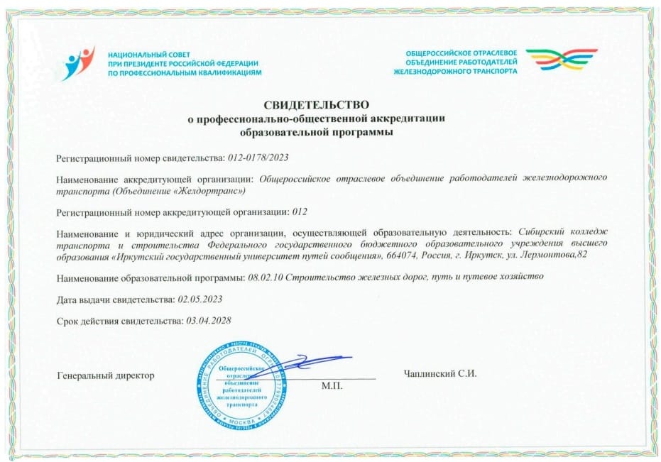 Сибирский колледж транспорта и строительства ИрГУПС успешно прошел процедуру профессионально-общественной аккредитации по специальности 38.02.01 Экономика и бухгалтерский учёт (по отрослям).