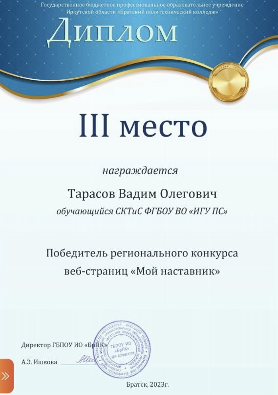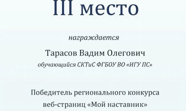 Студент СКТиС занял III место в Региональном конкурсе веб-страниц "Мой наставник"