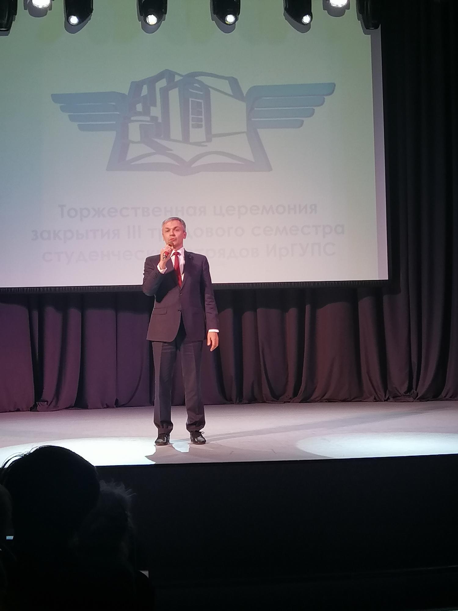 26 октября состоялась торжественная церемония закрытия III трудового семестра студенческих отрядов ИрГУПС. Всех участников мероприятия приветствовал ректор Иркутского государственного университета путей сообщения Юрий Анатольевич Трофимов, который поблагодарил ребят и вручил им заслуженные награды и благодарности. Студенты Сибирского колледжа транспорта и строительства являются бойцами студенческого строительного отряда «Байкал», который стал лучшим студенческим строительным отрядом по производственным показателям. Ежегодно в студенческие отряды набираются студенты для общестроительных работ, как на всероссийских стройках, так и на территории Иркутской области. Желаем новых проектов и реализации самых сложных планов. Пусть перед вами откроются новые горизонты,а поставленные задачи наступают самые смелые и неожиданные решения! Традиционное подведение итогов работы строительных отрядов завершается праздничным концертом.
