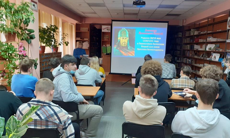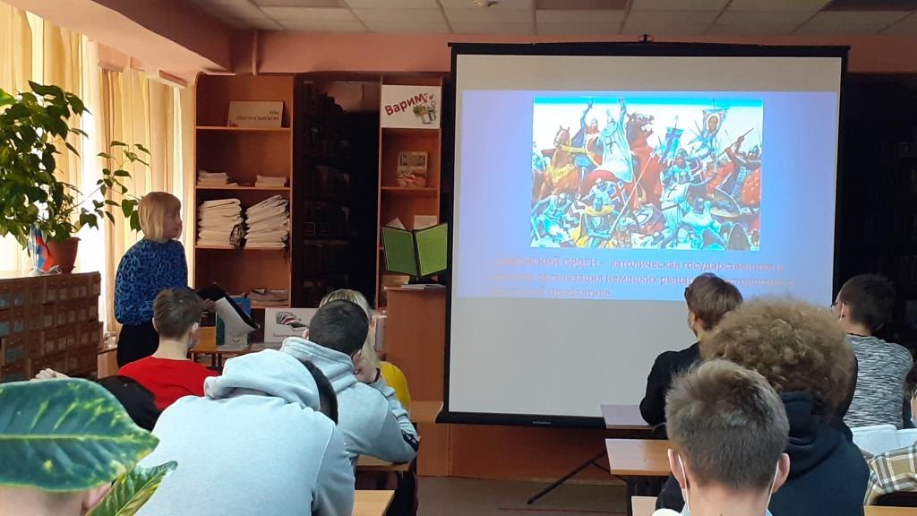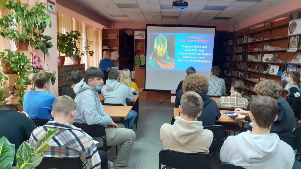 18 апреля - День воинской славы России - день победы русских воинов князя Александра Невского над немецкими рыцарями на Чудском озере, так называемое Ледовое побоище в 1242 году. Со школьной программы по истории студенты первого курса вспомнили и знают имя князя Александра Невского. Но не все знали о том, что 2021 год в нашей стране объявлен годом А. Невского и почему . «Кто к нам с мечом придет — от меча и погибнет». Эти слова, которые теперь известны каждому россиянину, по легенде, были сказаны князем Александром Невским. Спустя восемь столетий память о нем не только трепетно хранится, но и объединяет множество людей. Про Александра Невского режиссеры до сих пор снимают фильмы, композиторы сочиняют пьесы, а поэты пишут поэмы. В память о нем по всей России и сейчас строят храмы, возводят мемориальные комплексы, а самых достойных награждают его орденами. Студенты поблагодарили за интересную встречу, узнали, что можно заниматься в читальном зале и пользоваться интернетом.