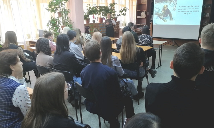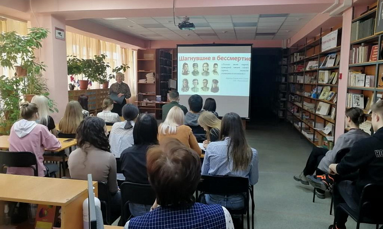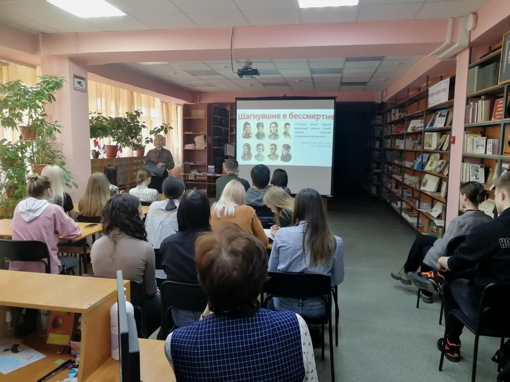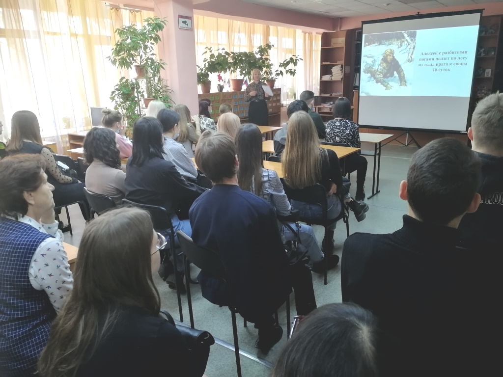 Сегодняшняя встреча стала уроком истории, уроком мужества для студентов второго курса. Приближается семьдесят седьмой День Победы нашего народа в Великой Отечественной войне. Тема о героях ВОВ важная тема всегда, а сегодня актуальна как никогда. К сожалению, ветеранов, участников войны , которые о подвигах могли рассказать, сегодня уже нет с нами. В учебных программах по истории и литературе очень мало говориться об этом. Наверное, по этому, так внимательно, затаив дыхание смотрели на экран и слушали студенты рассказ о героях легендарных летчиках Алексее Маресьеве, и Захаре Сорокине, о подвиге Зои Космодемьянской и Веры Волошиной , молодогвардейцах Краснодона, о том, что война и фашизм – это страшно. У каждого Героя своя история. У каждого Подвига своя цена. Эти люди навсегда вписали свои имена в историю нашей страны.