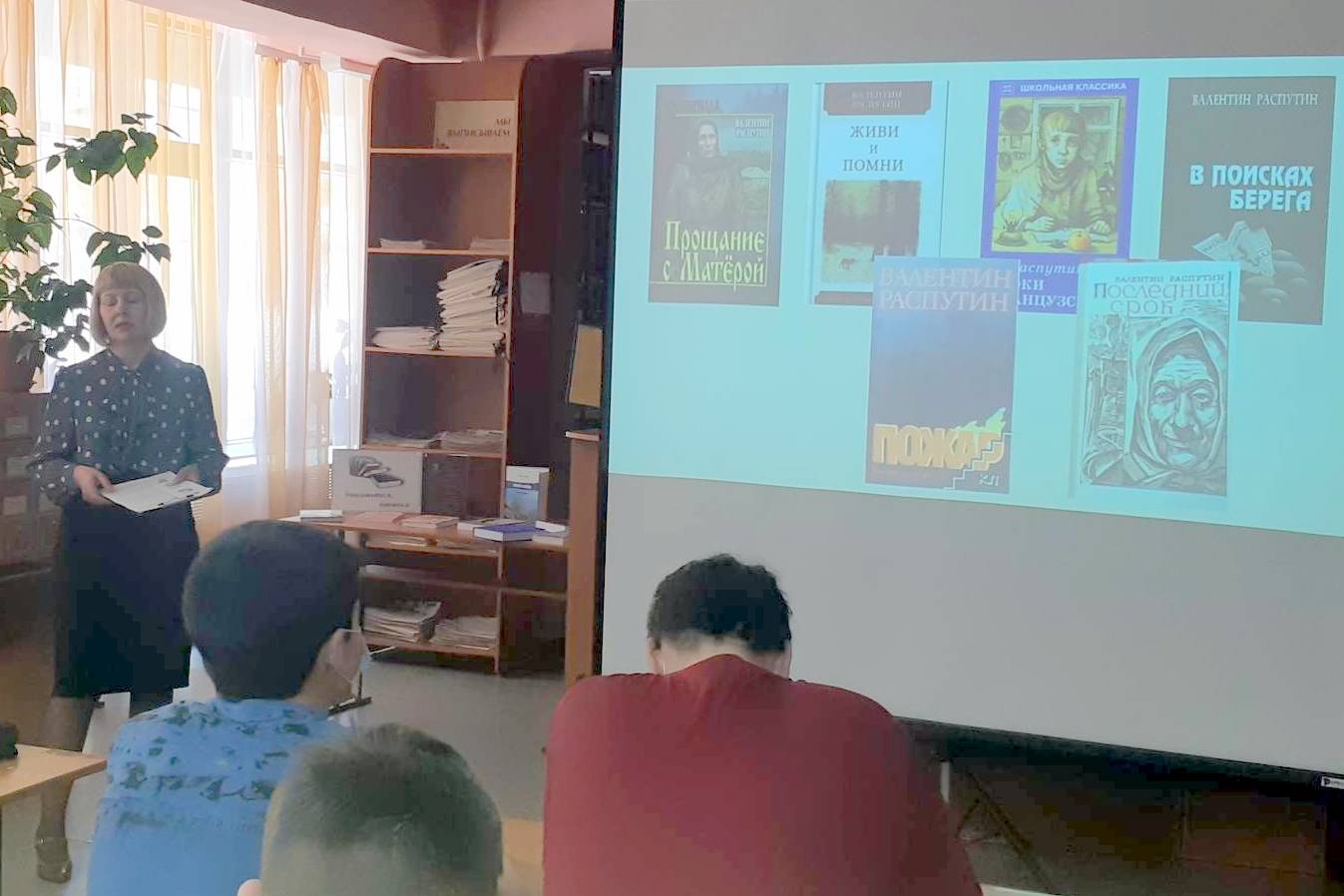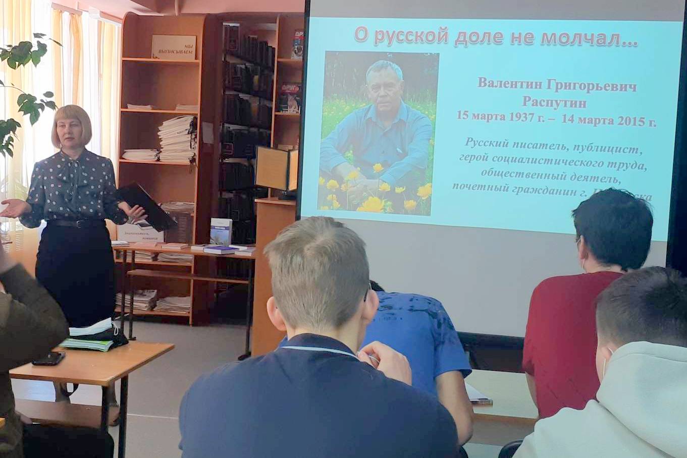 Сегодня 15 марта исполнилось бы 85 лет Валентину Григорьевичу Распутину. Надо признать, что молодежь сегодня очень мало читает художественной литературы и интересуются историей. Поэтому такие встречи о творчестве наших писателей, поэтов просто необходимы. Валентин Григорьевич Распутин великий писатель-прозаик, настоящий патриот своей родины. Основатель и самый яркий представитель направления, которое получило название «деревенская проза», его называют «сибирским Чеховым». В программе встречи интересный рассказ о жизни и творчестве , отрывки из фильмов по произведениям Валентина Григорьевича и из документального фильма о нём. Приглашенные на встречу студенты ИрГУПС, читали стихи о Валентине Григорьевиче, написанные в память о нем. С того момента, когда не стало писателя, его слова и мысли обрели особую значимость. О жизни и творчестве Валентина Григорьевича Распутина скромного и талантливого человека нужно не только говорить, но читать, изучать его произведения, как мастера народного слова. Самыми известными произведениями писателя Валентина Распутина стали повести «Уроки французского», «Прощание с Матёрой», «Пожар», «Последний срок», «Живи и помни». В заключение встречи, надеемся, у студентов появилось желание записаться в библиотеку и читать его произведения.