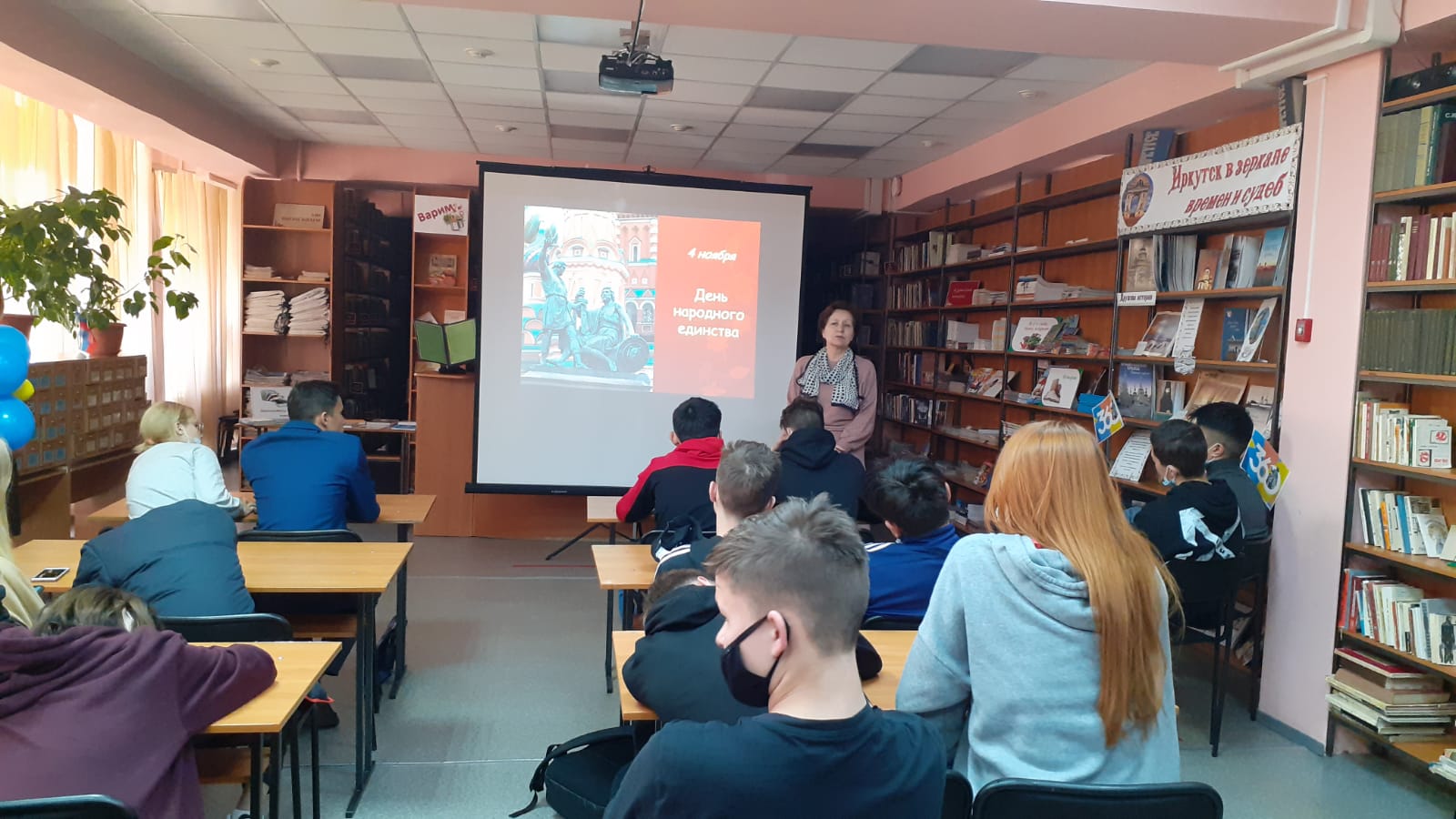День народного единства был учрежден в память о событиях 1612 года, когда народное ополчение под предводительством Кузьмы Минина и Дмитрия Пожарского освободило Москву от польских интервентов. Исторически этот праздник связан с окончанием cмутного времени в России в XVII веке. Таким образом, День народного единства совсем не новый праздник, а возвращение к старой традиции. Студенты пополнили свои знания по истории, посмотрели отрывки из исторических фильмов, узнали - кому посвящен памятник на красной площади в Москве.
