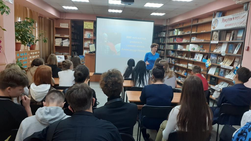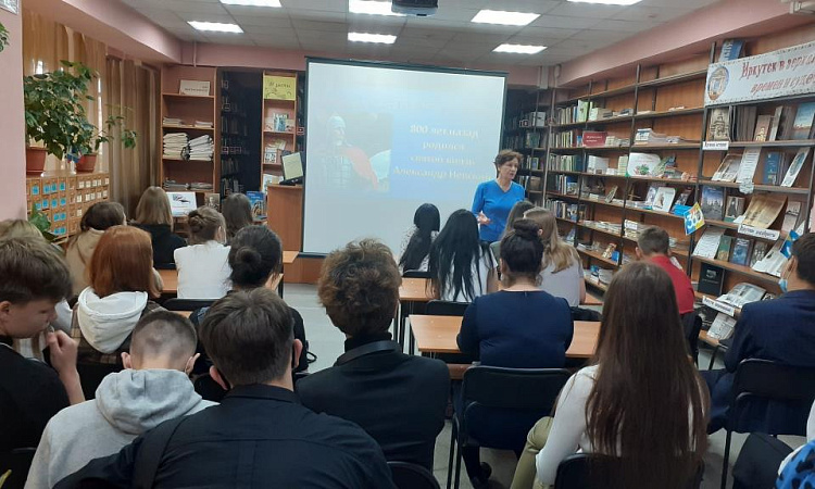 «Кто к нам с мечом придет — от меча и погибнет». «Надо крепить оборону на Западе, а друзей искать на Востоке». Эти слова, которые теперь известны каждому россиянину, по легенде, были сказаны князем Александром Невским. Спустя восемь столетий память о нем не только трепетно хранится, но и объединяет множество людей. Про Александра Невского режиссеры до сих пор снимают фильмы, композиторы сочиняют пьесы, а поэты пишут поэмы. В память о нем по всей России и сейчас строят храмы, возводят мемориальные комплексы, а самых достойных награждают его орденами. Студенты поблагодарили за интересную встречу, познакомились с сотрудниками библиотеки, узнали, как можно заниматься в читальном зале.