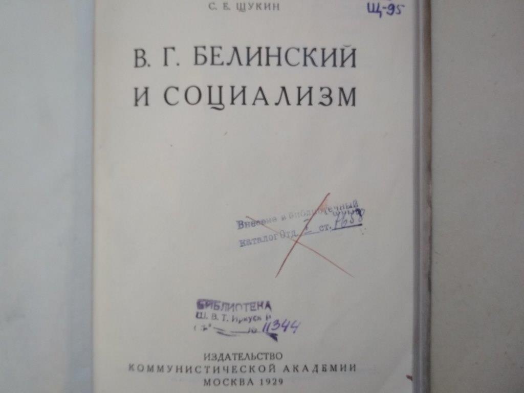 - Щукин С.Е. «В.Г. Белинский и социализм» 1929г