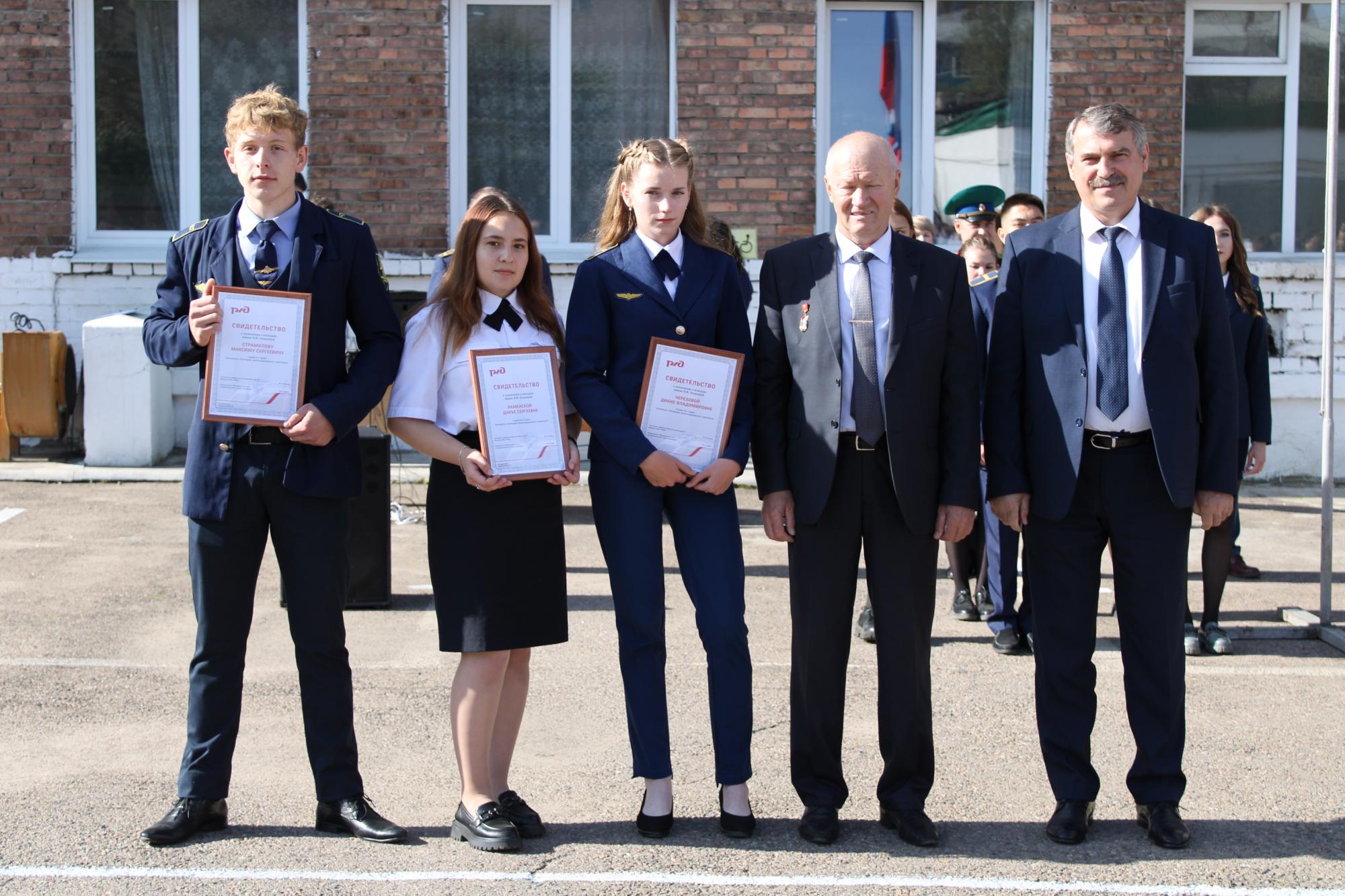 В ходе мероприятия состоялось вручение сертификатов именных стипендий студентам техникума: стипендии генерального директора – председателя правления ОАО «РЖД» назначены Екатерине Андреевой, Марии Кармановой и Ивану Лисицыну, стипендий начальника Забайкальской железной дороги (Роман Михайлов, Валерия Иванова), стипендий выдающихся работников железнодорожного транспорта им. Ульяновой (Максим Страмилов, Диана Черезова, Дарья Раменская).