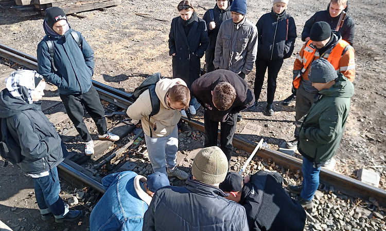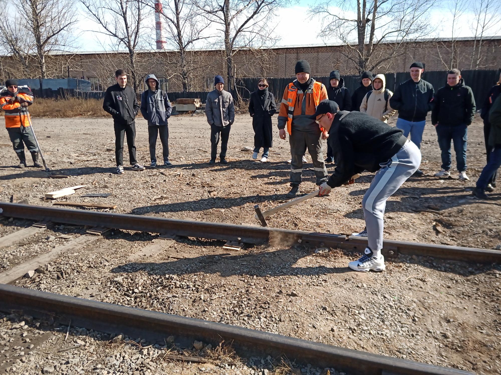2 апреля 2024 года на территории Читинской дистанции пути Забайкальской железной дороги, состоялся выездной мастер-класс для студентов 2 курса специальности «Строительство железных дорог, мостов и транспортных тоннелей». Занятие организовали старший преподаватель кафедры СЖД Евгений Непомнящих и дорожный мастер ПЧ-4 Андрей Шилкин.