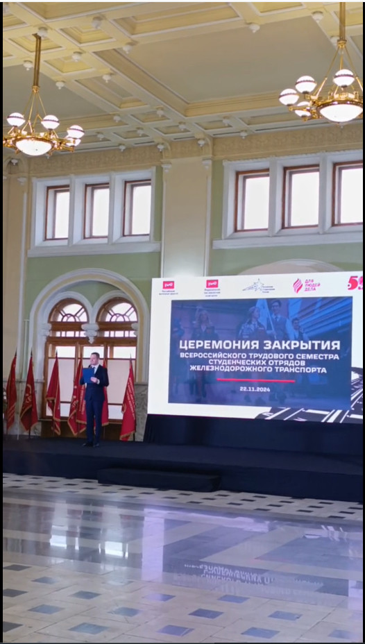 22 ноября 2024 г. студенты Забайкальского института железнодорожного транспорта посетили мероприятие, посвященное 65-летию движения студенческих отрядов РФ и 20-летию учреждения молодежной общероссийской общественной организации «Российские Студенческие Отряды» в г. Москва. Открытие слета прошло в Государственном Кремлёвском дворце, где собралось более 5 тысяч участников движения. Программа мероприятия была разделена на две части: профориентационная и торжественная часть. Профориентационная часть проводилась отдельно для каждого направления: строительное, медицинское, проводники, жд отрасль, сельскохозяйственное и педагогическое. Здесь обучающиеся проходили теоретический и практические этапы. Так же были отдельные задания для монтеров пути и для сигналистов.