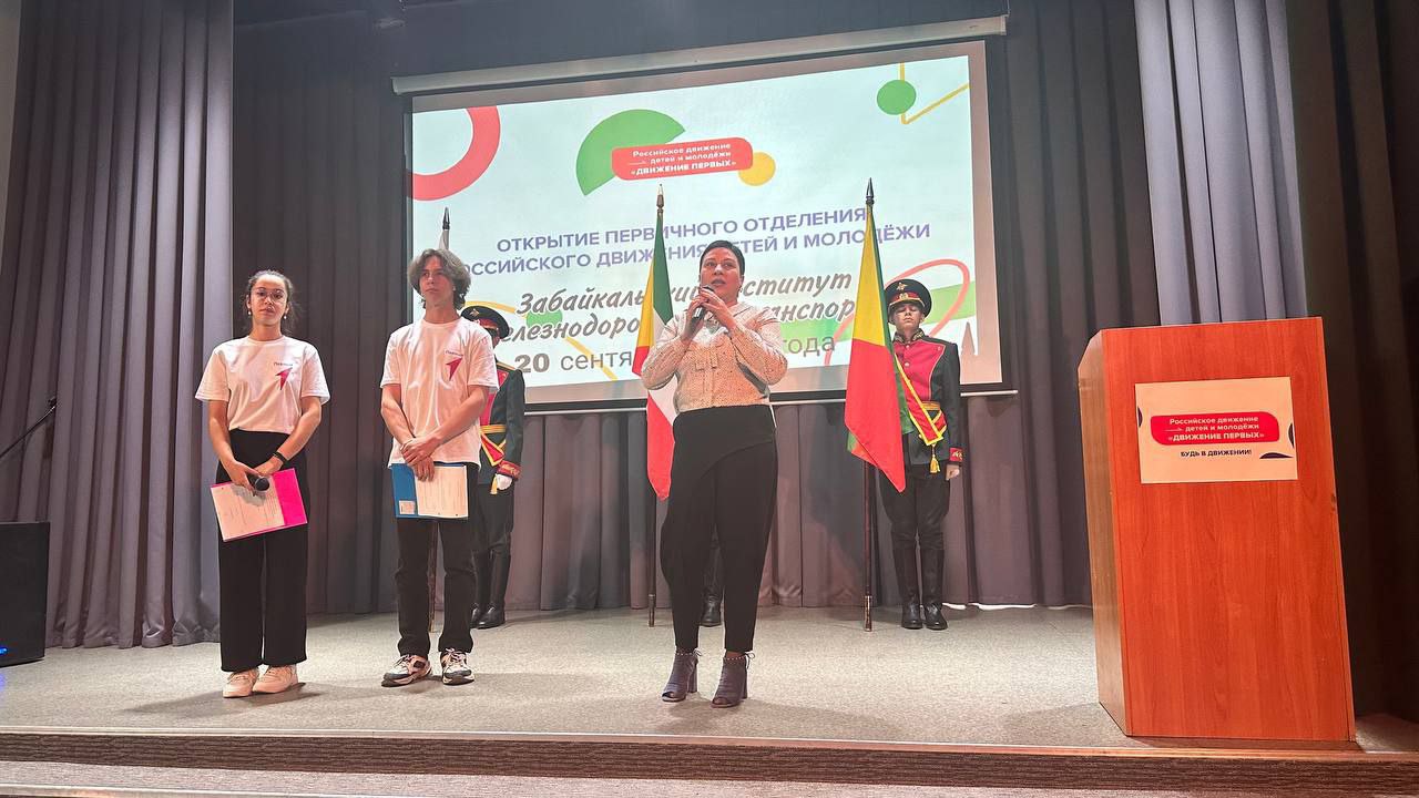Вчера в Забайкальском институте железнодорожного транспорта торжественно открылось первичное отделение российского движения детей и молодёжи "Движение Первых". На мероприятии присутствовала представитель регионального отделения Даба Очирова, она поздравила представителей и обучающихся с таким важным событием в жизни института, гарантировала от имени сообщества поддержку всех детских и молодежных инициатив.