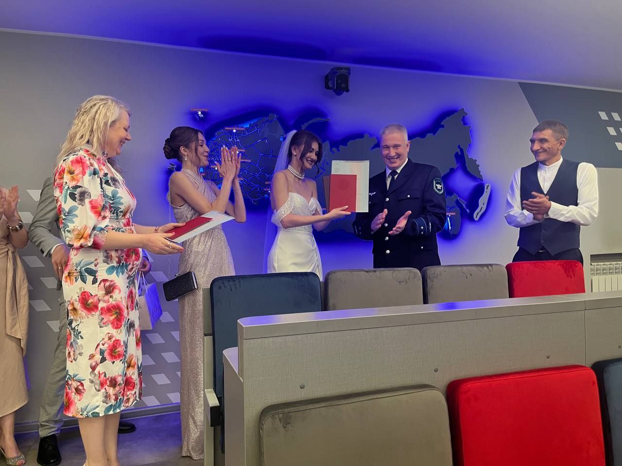 Выпускница кафедры «Экономика и управление» Полина Ханжова пришла на вручение диплома прямо из ЗагСА, в день бракосочетания она получила диплом с отличием.