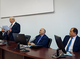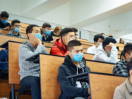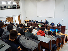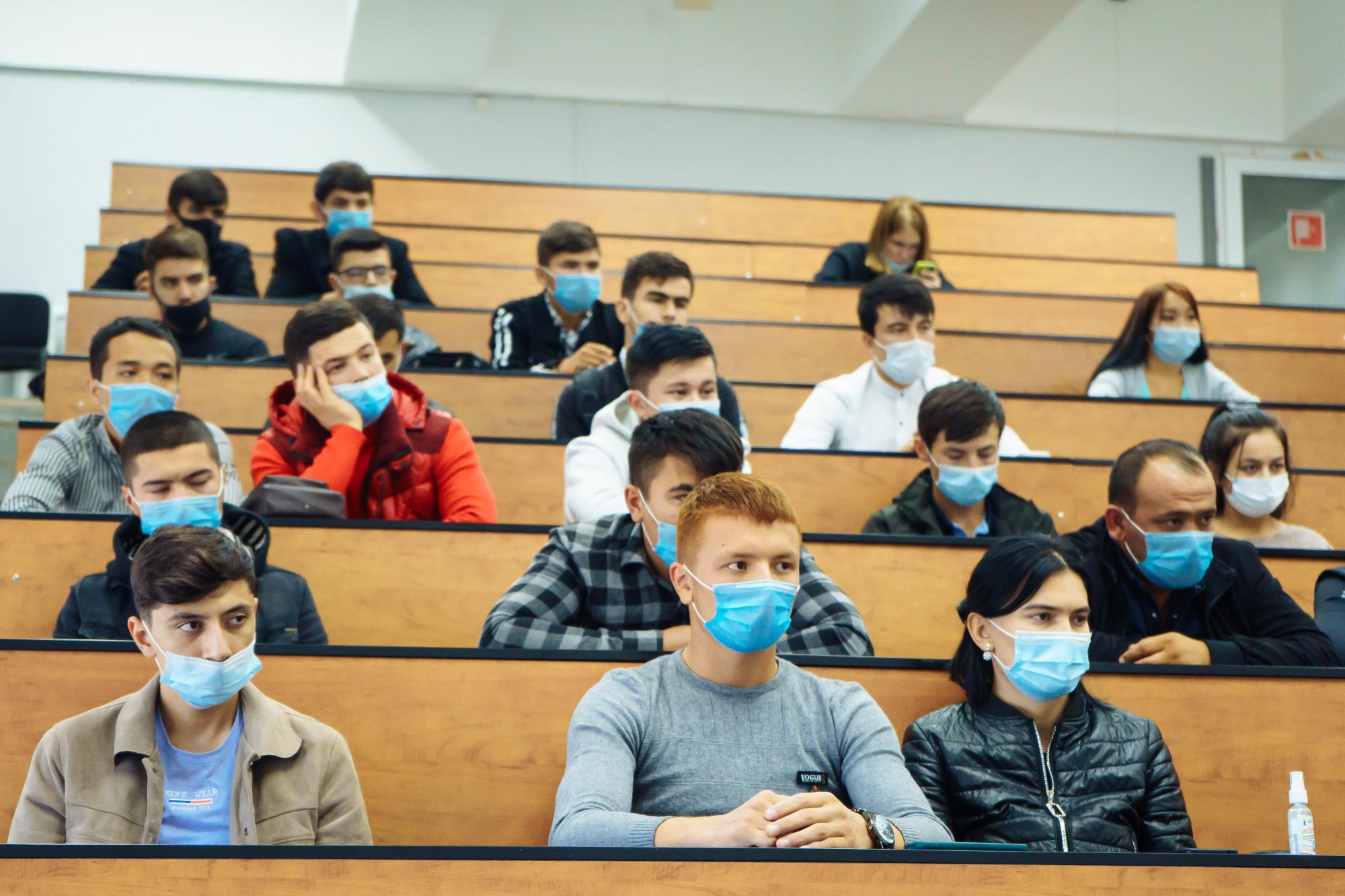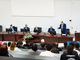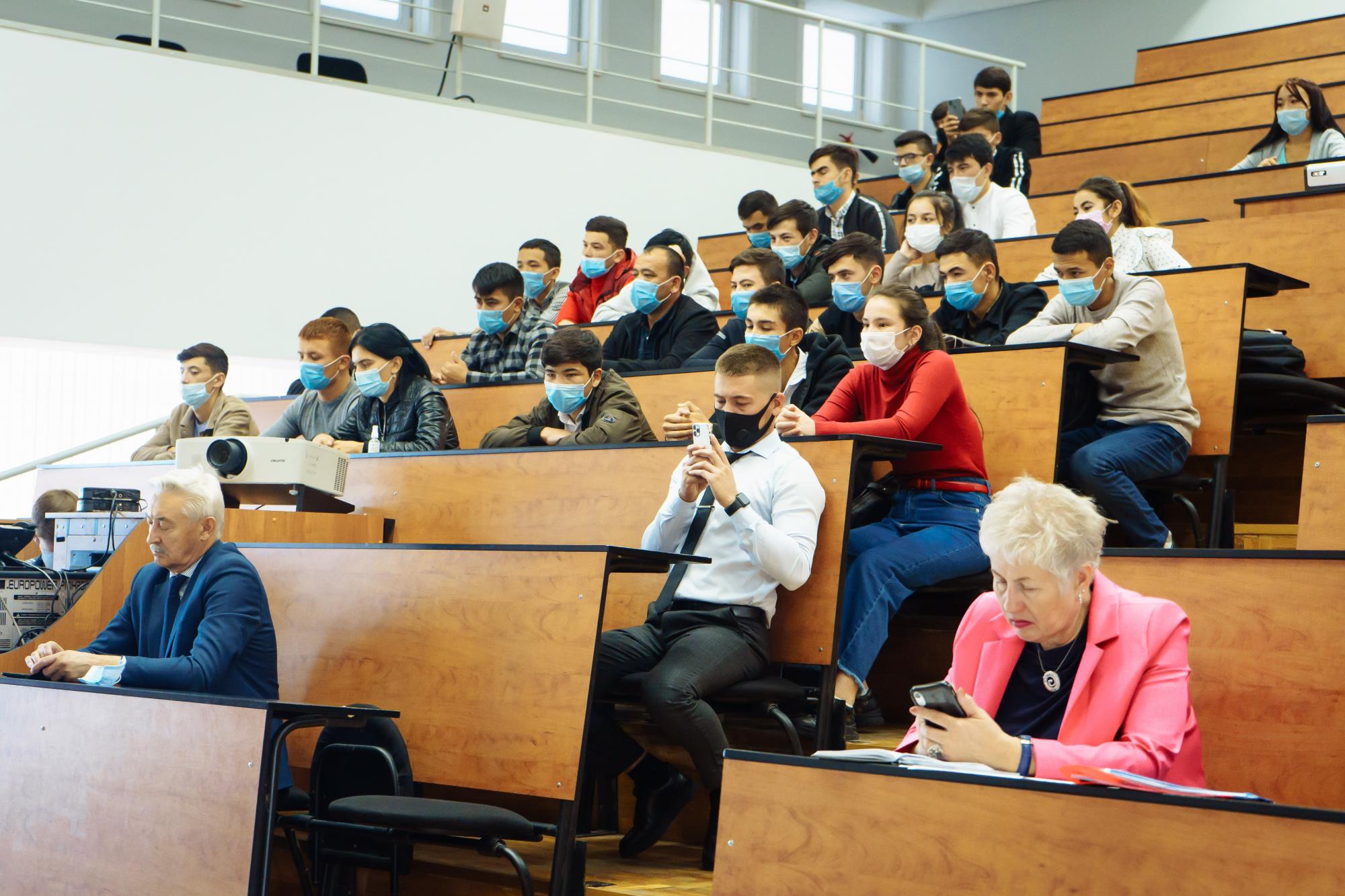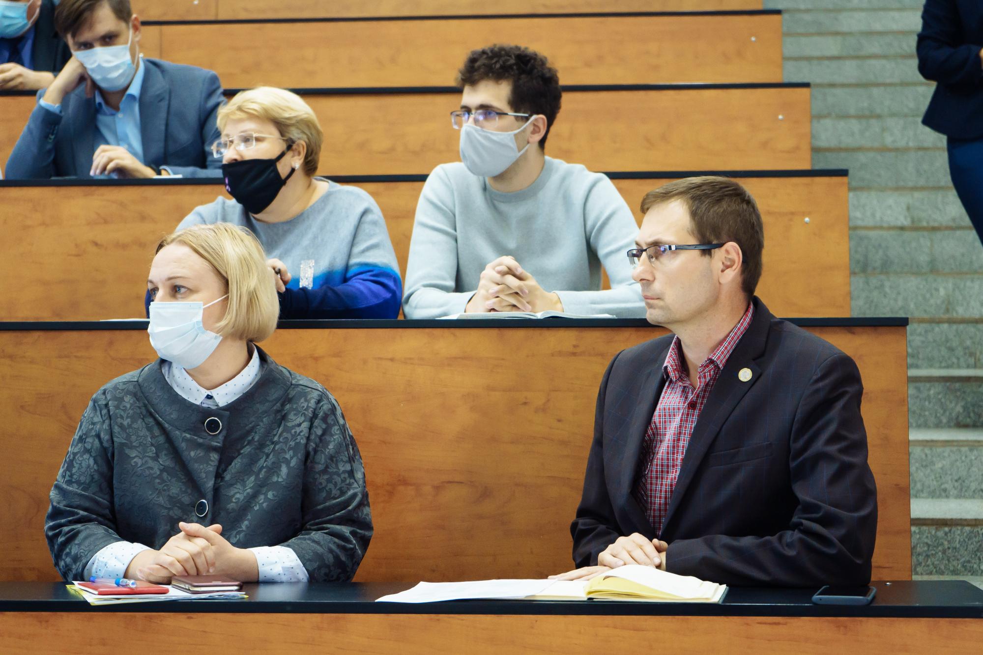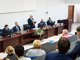 И.о. ректора университета Андрей Хоменко представил студентам первого курса деканов всех пяти факультетов, директора студгородка. Молодым людям рассказали также о внеучебной деятельности - творческих, спортивных направлениях, а также работе Медиацентра.