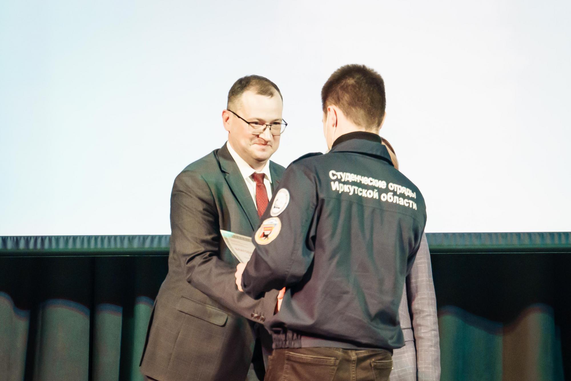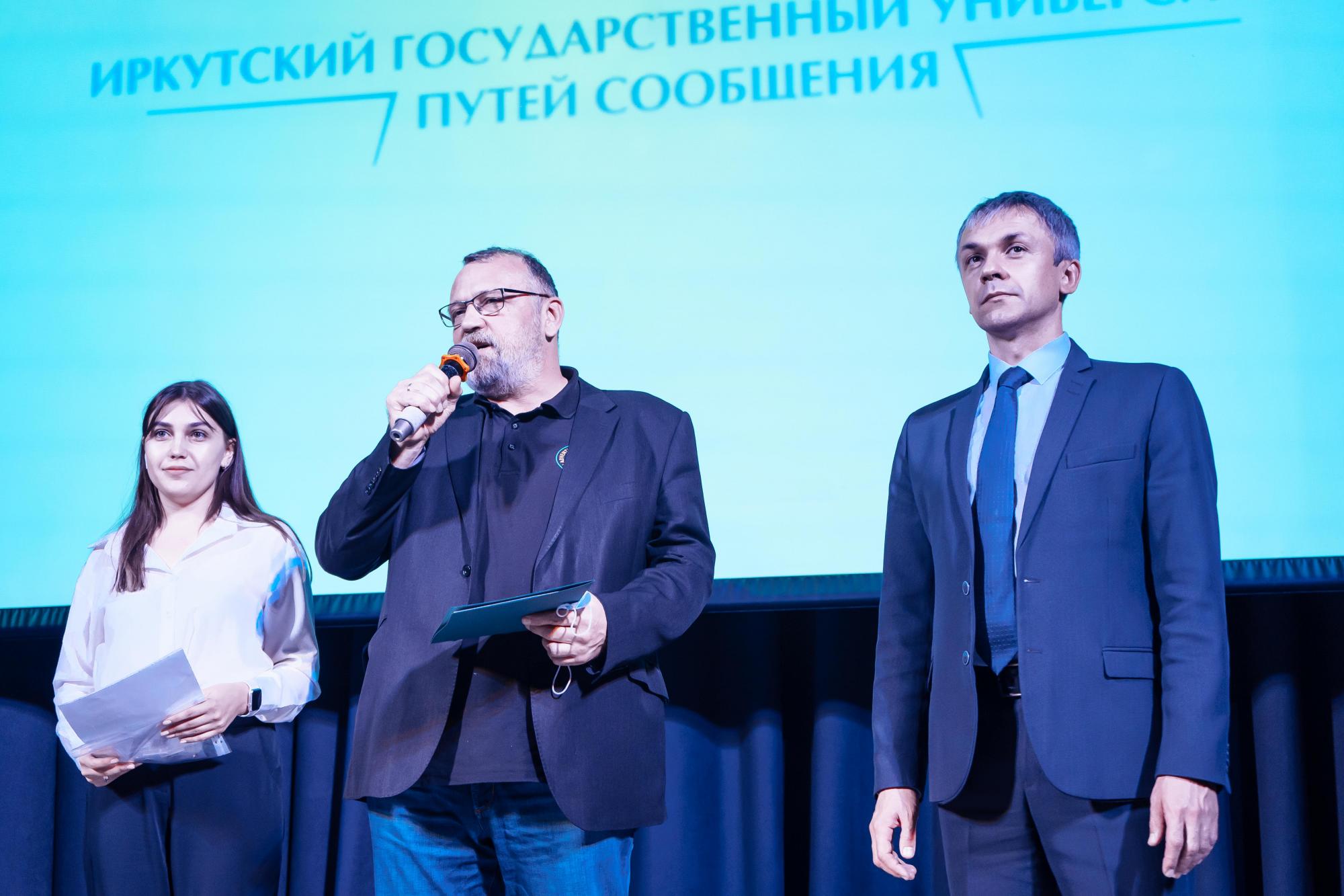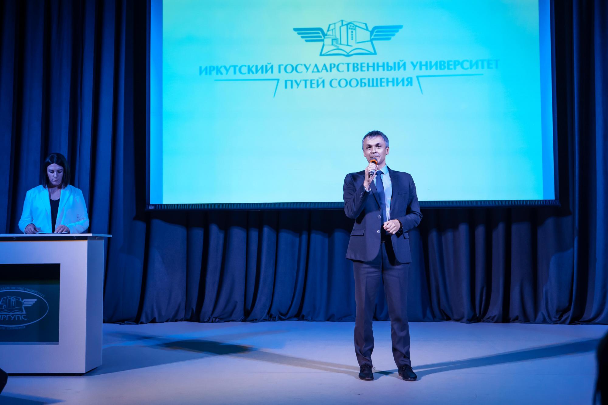 В зале собрались представители всех студенческих отрядов ИрГУПС. В начале к бойцов, командиров и комиссаров поприветствовал первый проректор Юрий Трофимов.