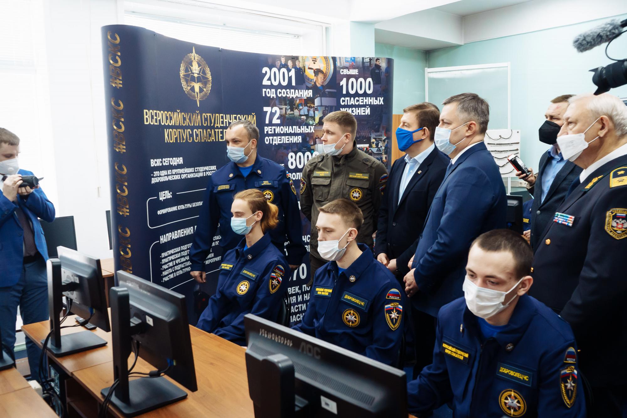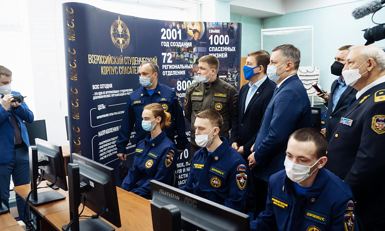 17 февраля в Иркутске Первый заместитель председателя Совета Федерации Федерального Собрания Российской Федерации, секретарь Генерального совета партии «Единая Россия» Андрей Турчак и губернатор Иркутской области Игорь Кобзев встретились с и.о. ректора ИрГУПС Андреем Хоменко, руководителем Всероссийского студенческого корпуса спасателей Евгением Козеевым и добровольцами ВСКС в Иркутске.