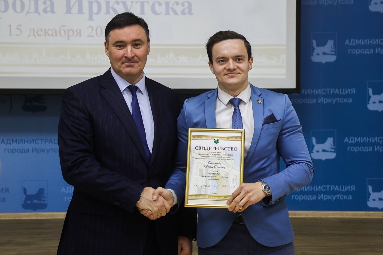 Накануне в администрации Иркутска состоялась торжественная церемония вручения именных стипендий мэра в области науки и техники. Ежегодно стипендия присуждается за научно-исследовательские работы в интересах социально-экономического развития города.