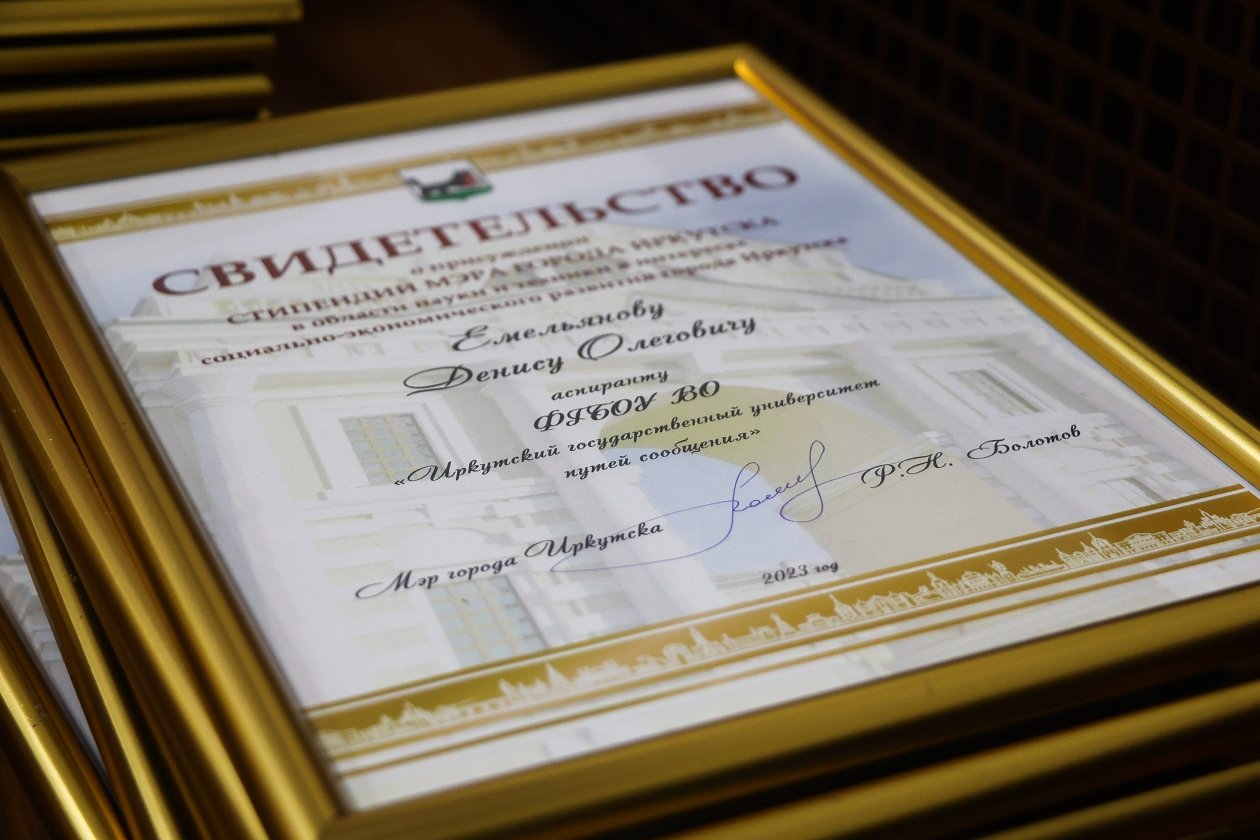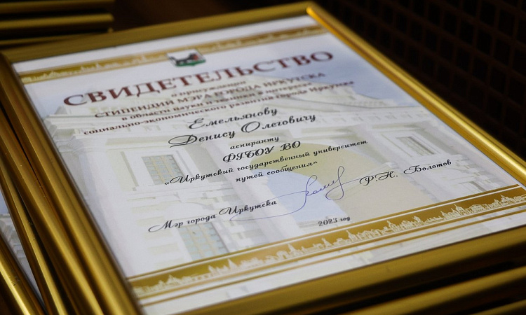 В 2023 году стипендией мэра были отмечены 25 студентов и молодых ученых, среди которых четверо аспирантов Иркутского государственного университета путей сообщения: